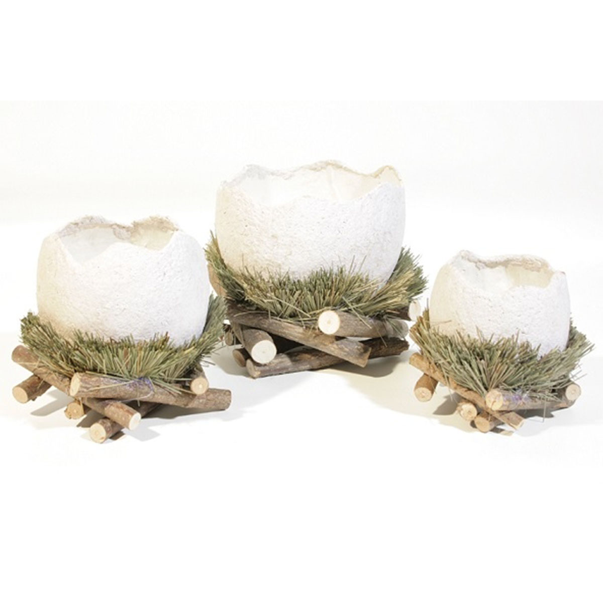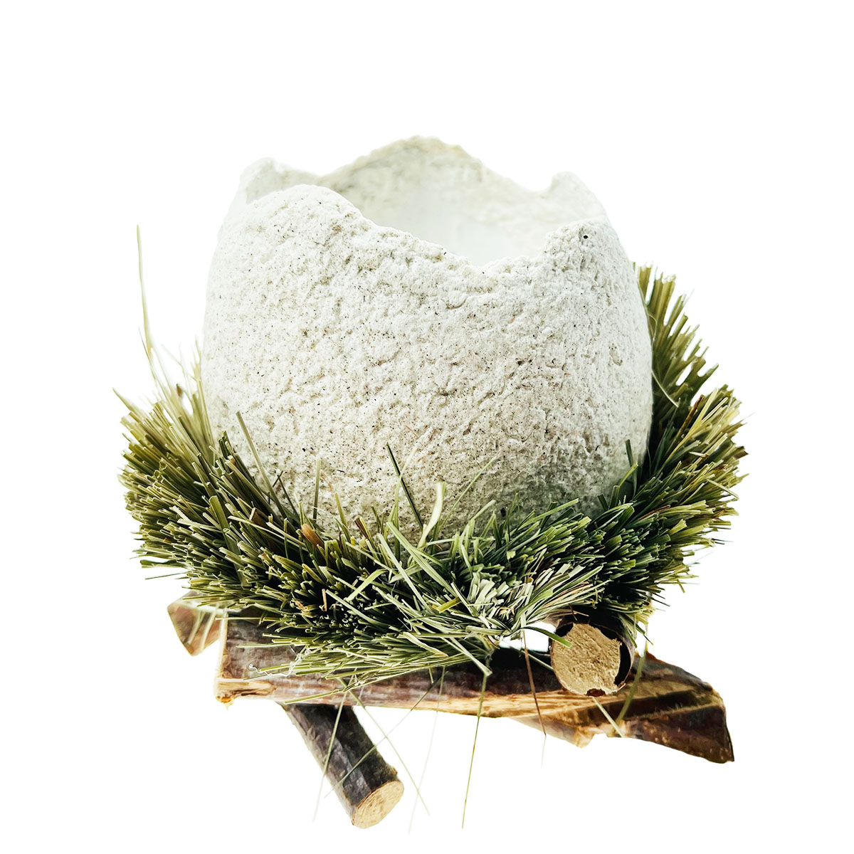 Deko Ei, oben offen, 10cm, 7x8cm, Pappmache, Holz