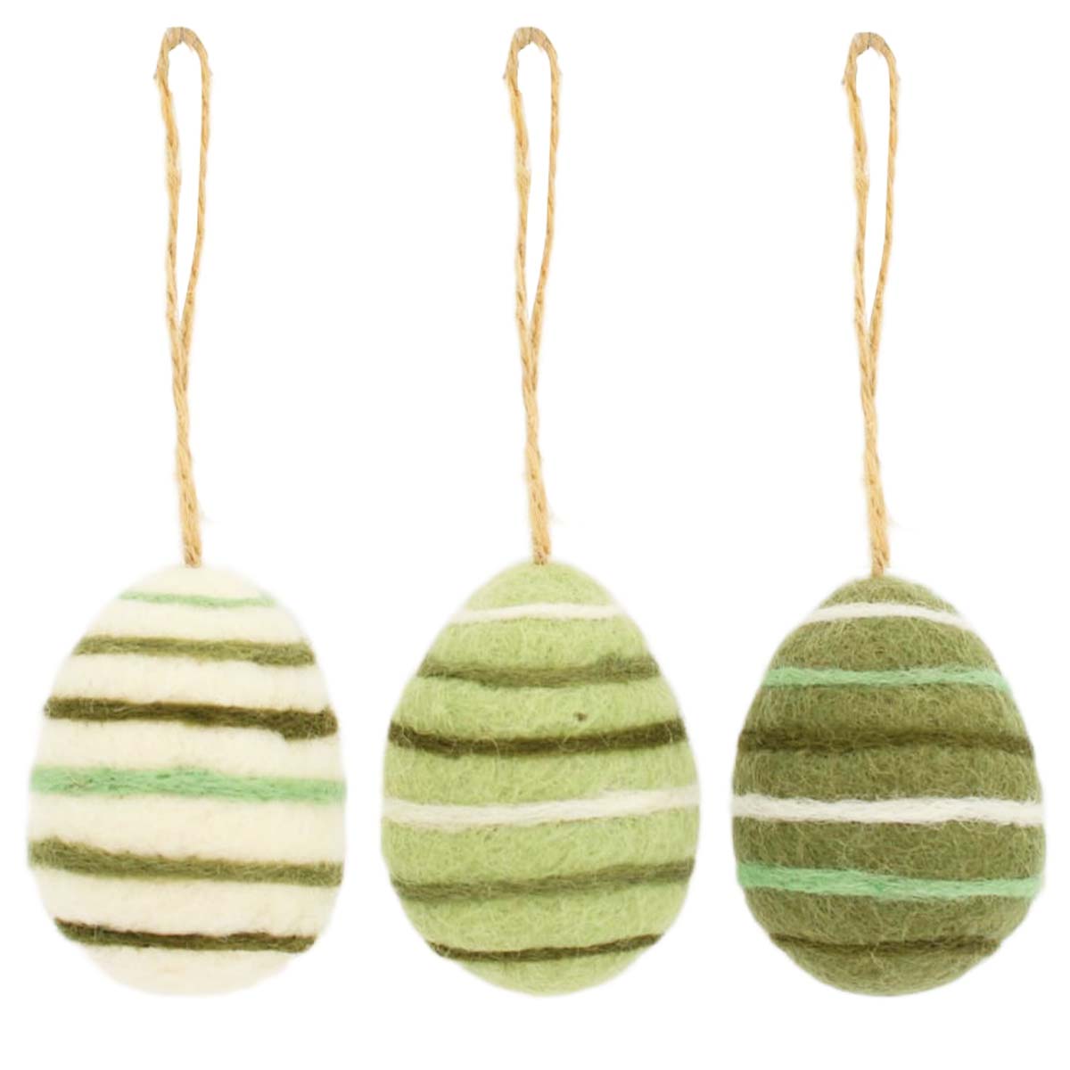 Deko Ei, Osterei aus Filz, dunklegrün mit Ringel, 5x7cm, Hänger, DIJK Natural Collections