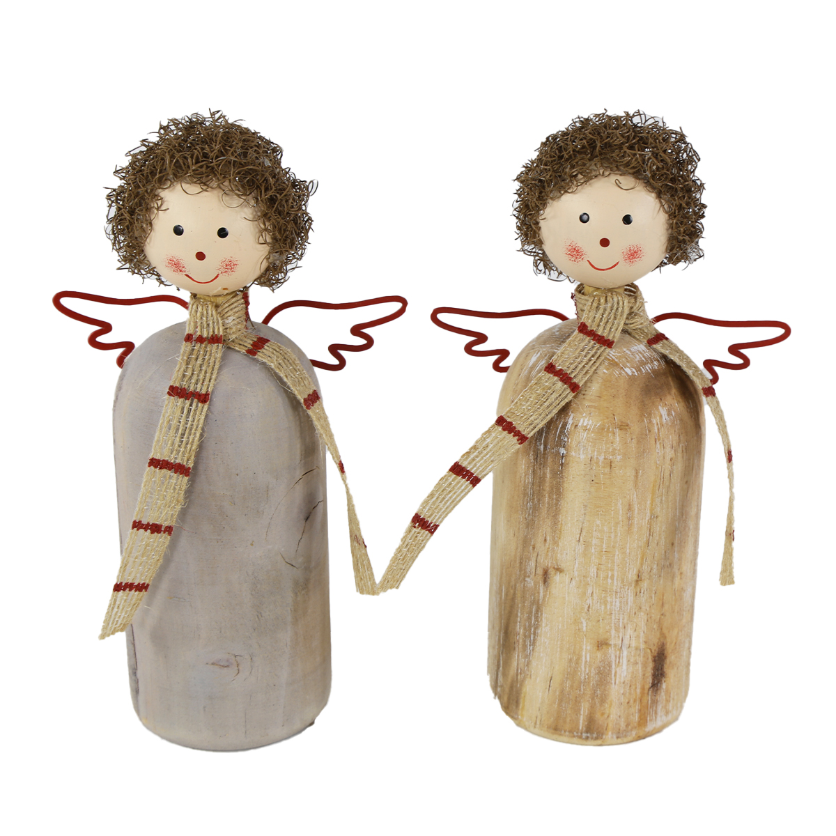 Deko Engel, Holzengel mit Schal, used look, natur-rot, 20cm