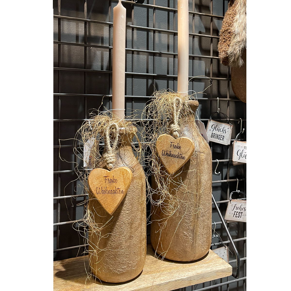 Deko Flasche aus Holz, Kerzenständer oder Blumenvase aus Mangoholz, 25cm