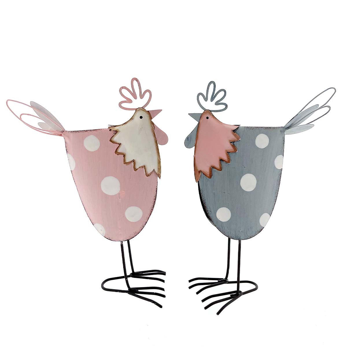 Deko Hahn, Metallhahn grau mit weiße Punkte, 25cm, Metall