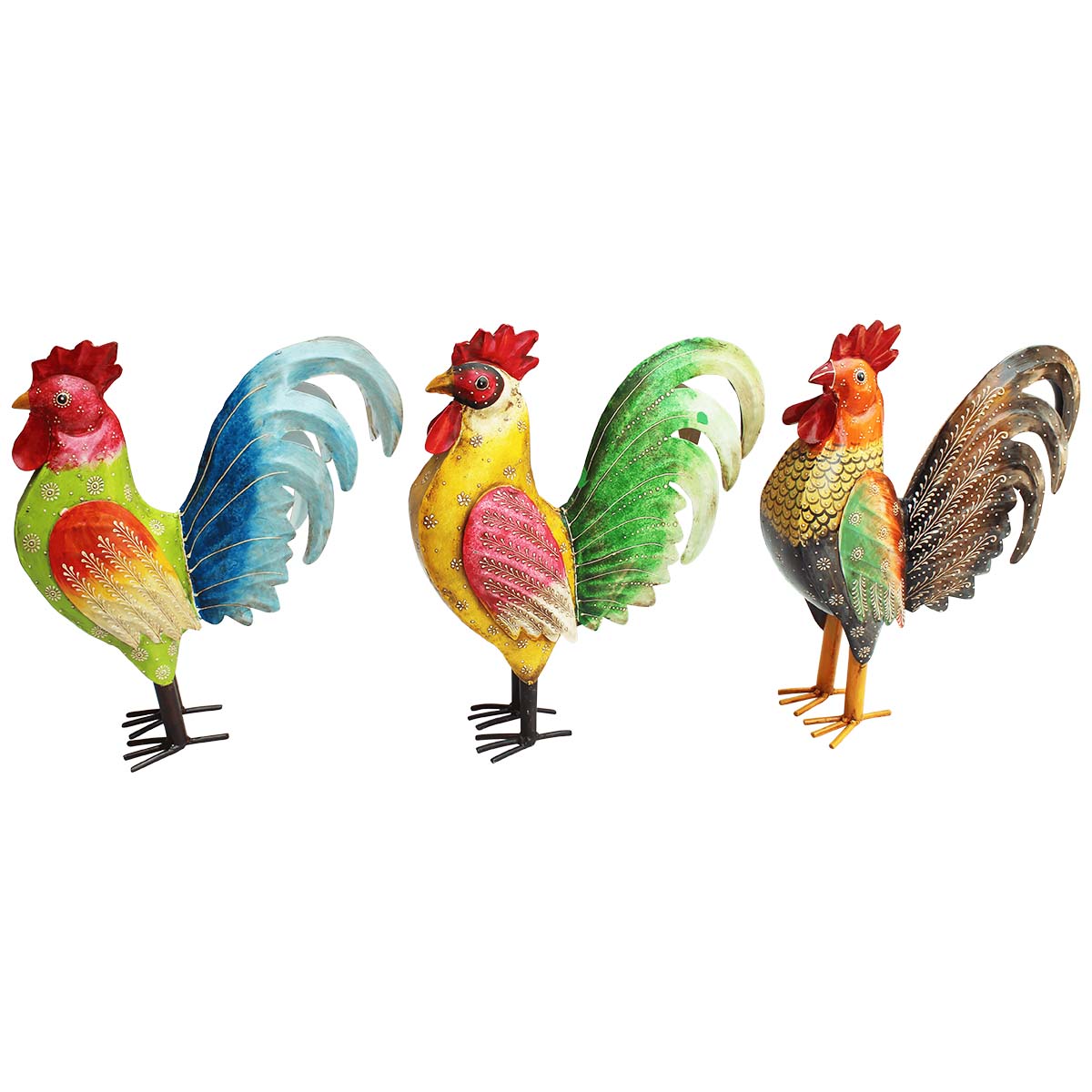 Deko Hahn, Metallhahn grün bunt, 35x41cm, Metall