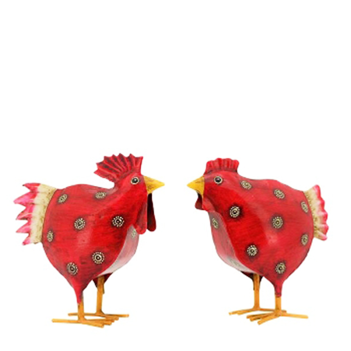 Deko Hahn, Metallhahn mit Punkte, rot, 14x15cm, Metall