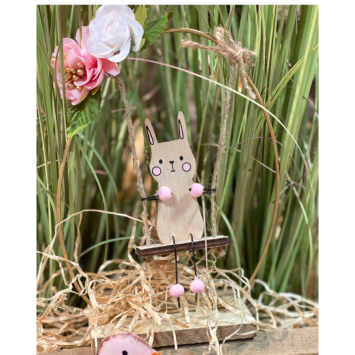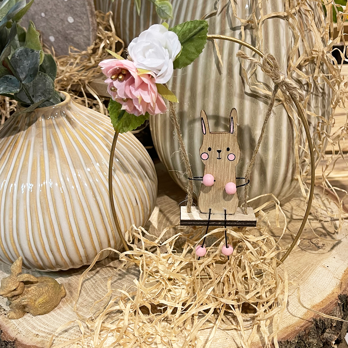 Deko Hase auf Schaukel, 19x13cm, Holz