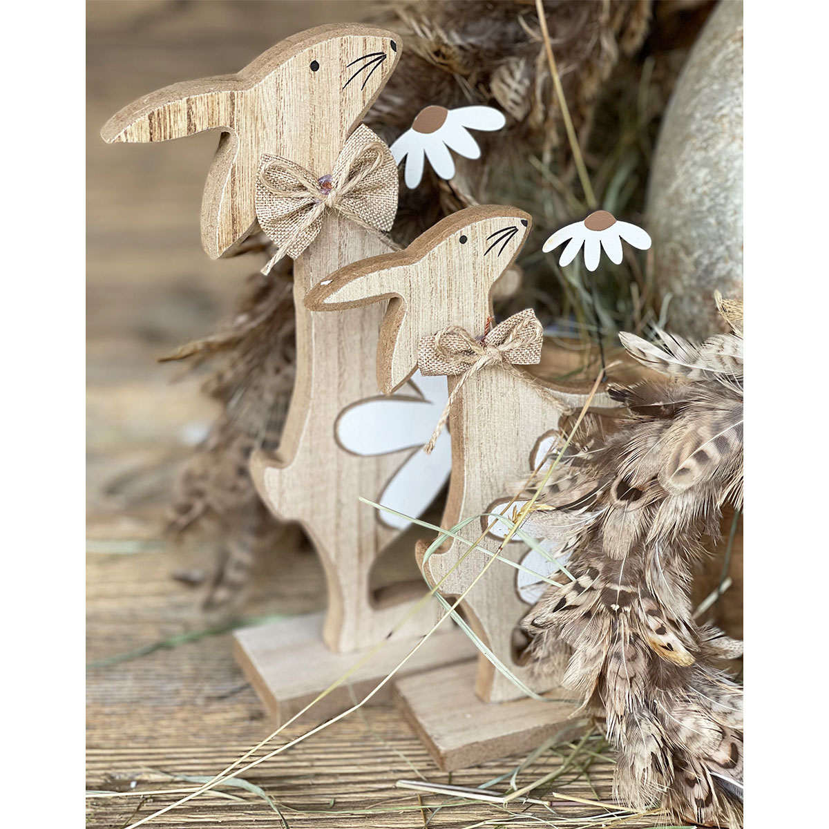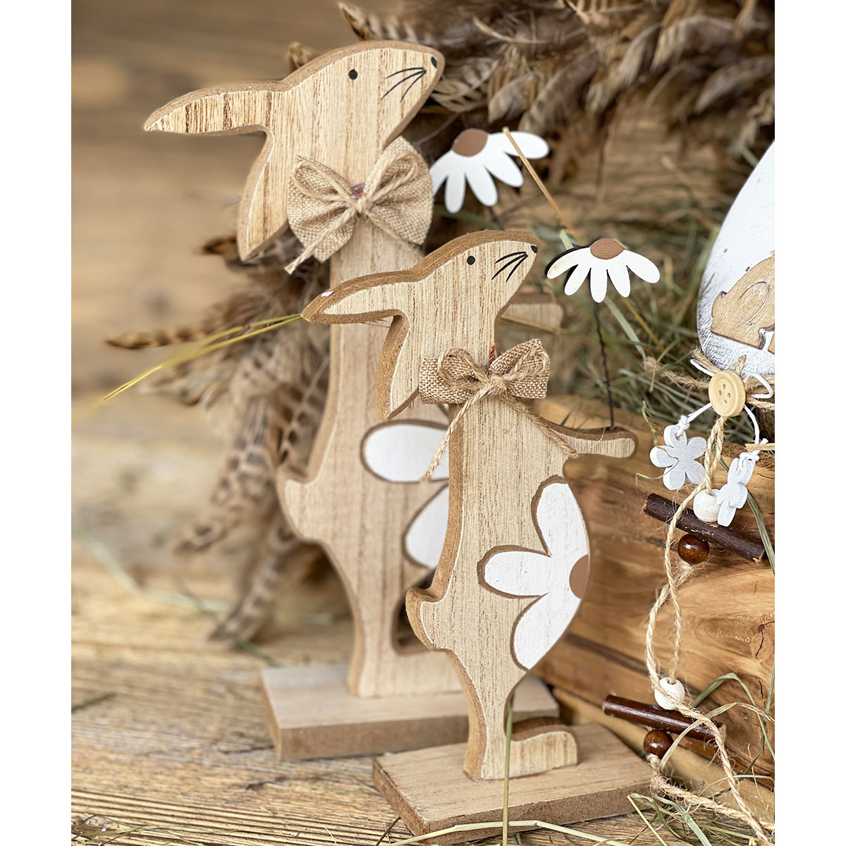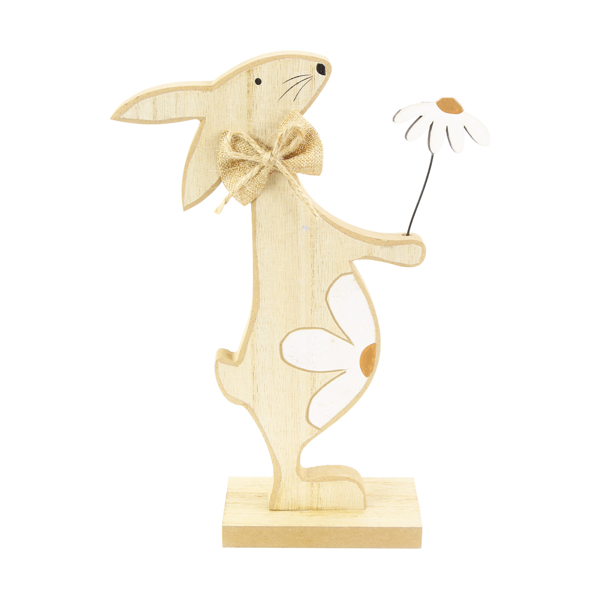 Produktinformationen "Deko Hase mit Blume, natur, 15x25cm, Holz, Aufsteller"