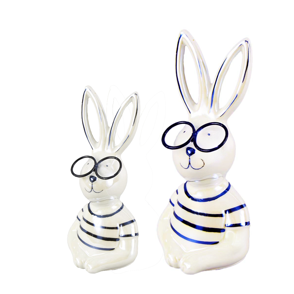 Produktinformationen "Deko Hase, Osterhase mit Brille und gestreiftem Shirt, pearloptik schwarz/weiß, 17cm, Keramik"
