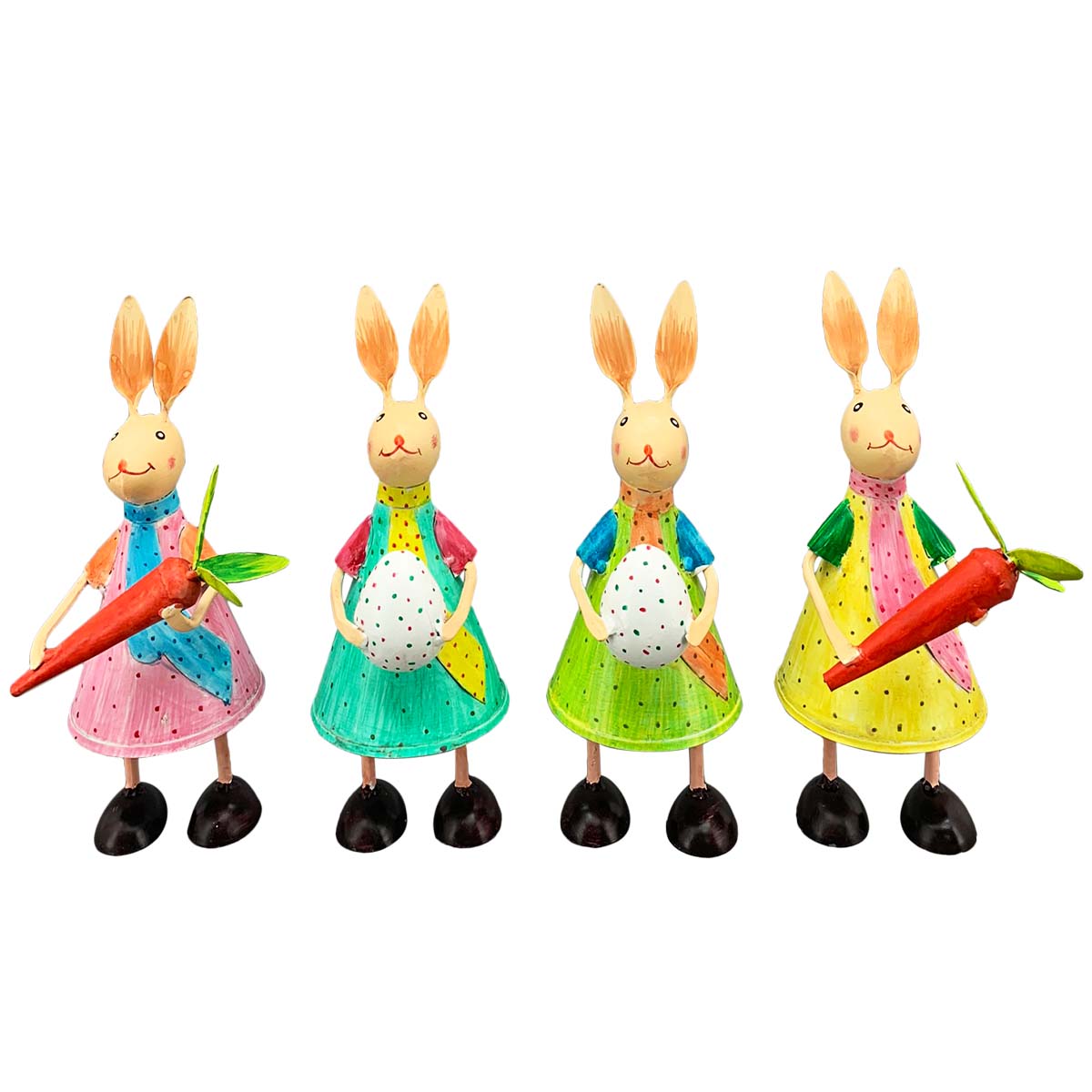 Deko Hase, Osterhase mit Kleid hellgrün, Metallhase mit Ei, 28cm, Metall