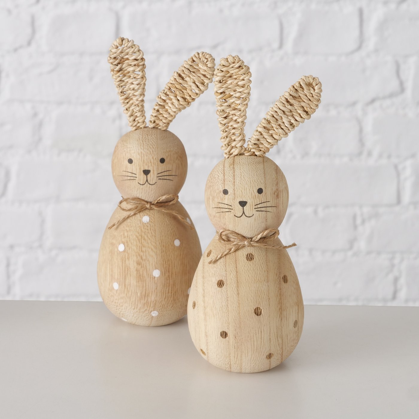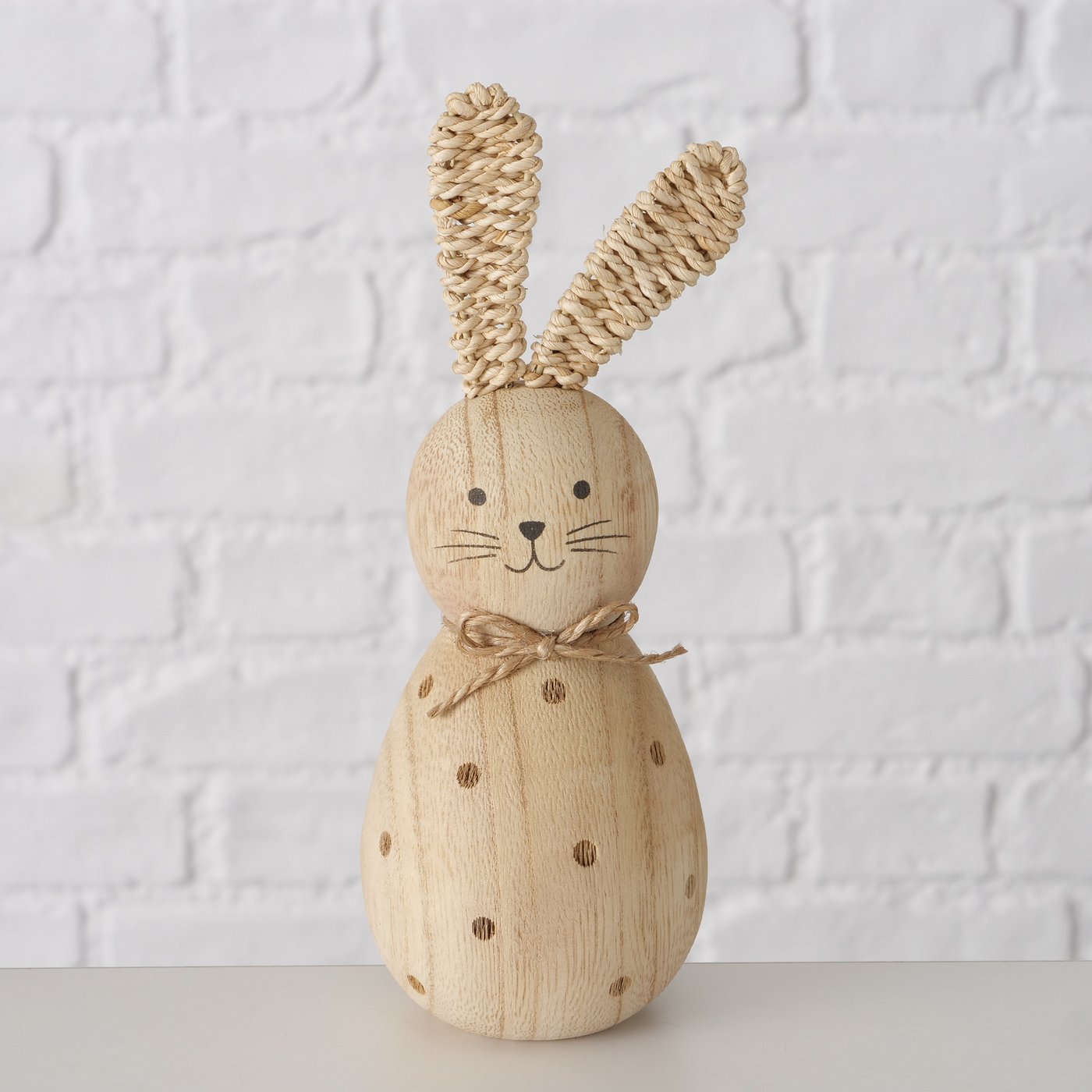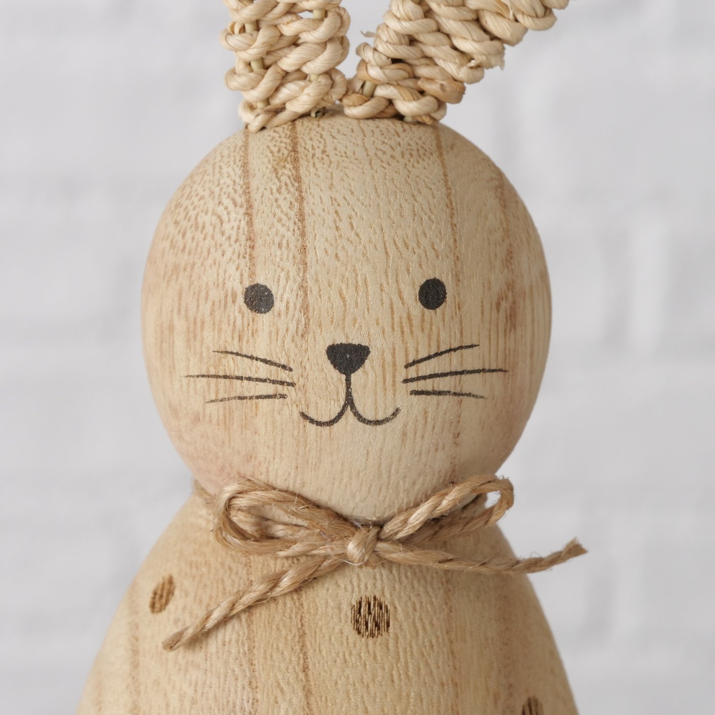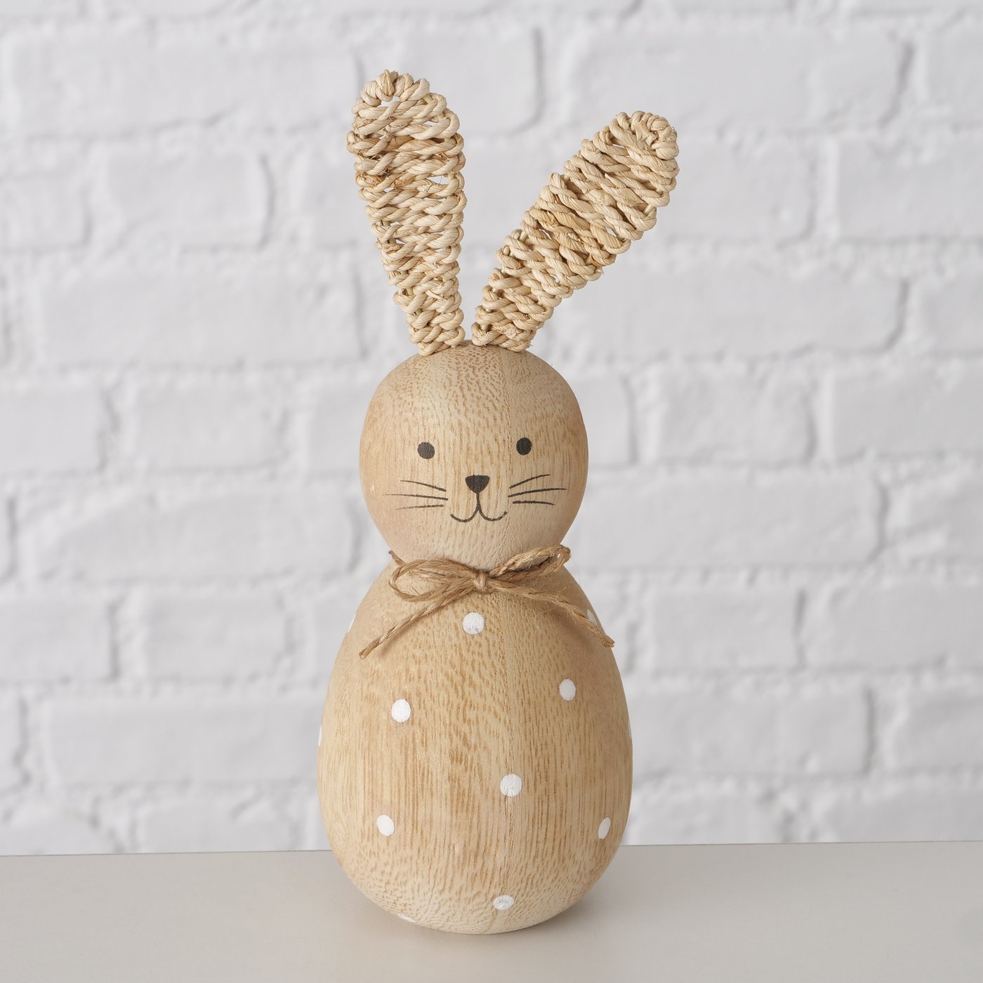 Deko Hase Sanela, Holzhase mit Bastohren und Punkte, 17cm, Naturholz, Boltze Home Collections
