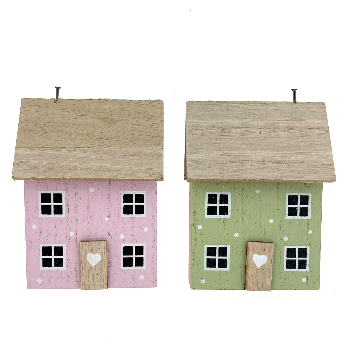 Deko Haus, Holzhaus mit Punkte und Holztüre, rosa-weiß, 10x14cm