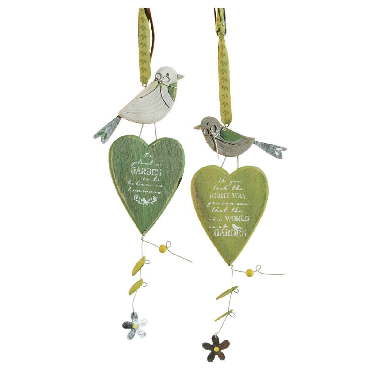 Produktinformationen "Deko Herz, Holzherz mit Vogel, grün, 30cm, Hänger"