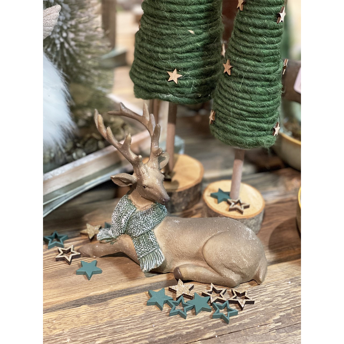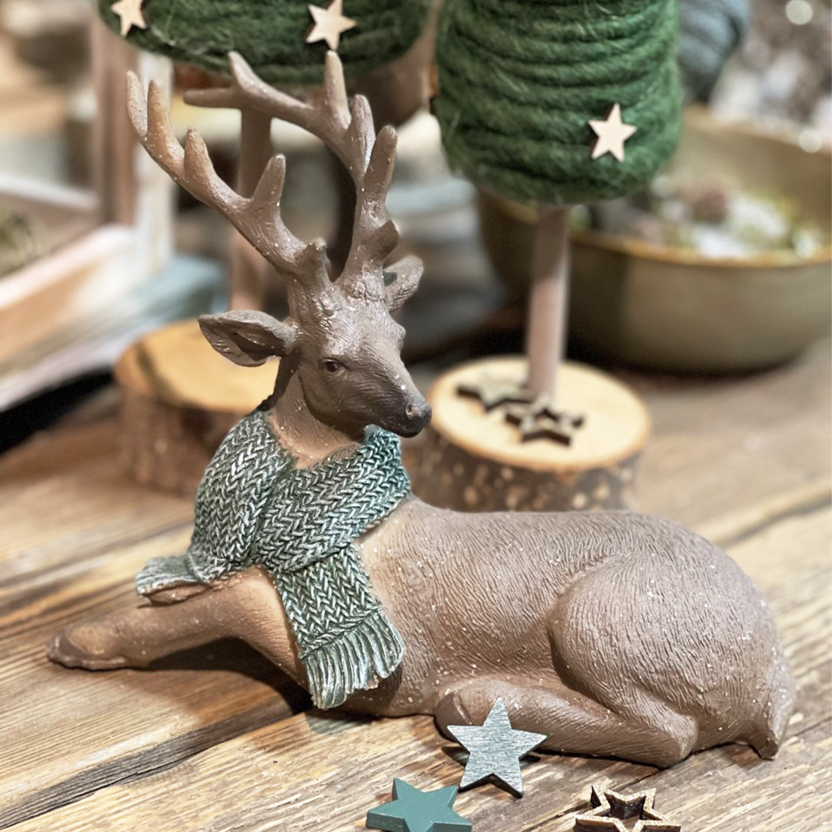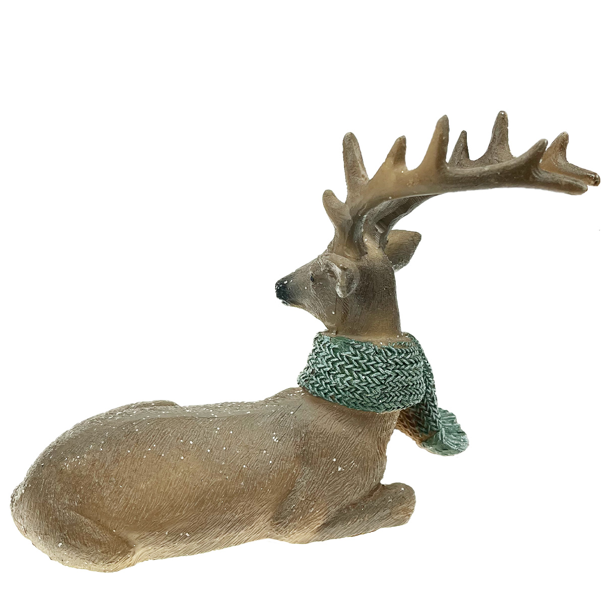 Deko Hirsch, Hirsch mit Schal, liegend, Polyresin, 20cm
