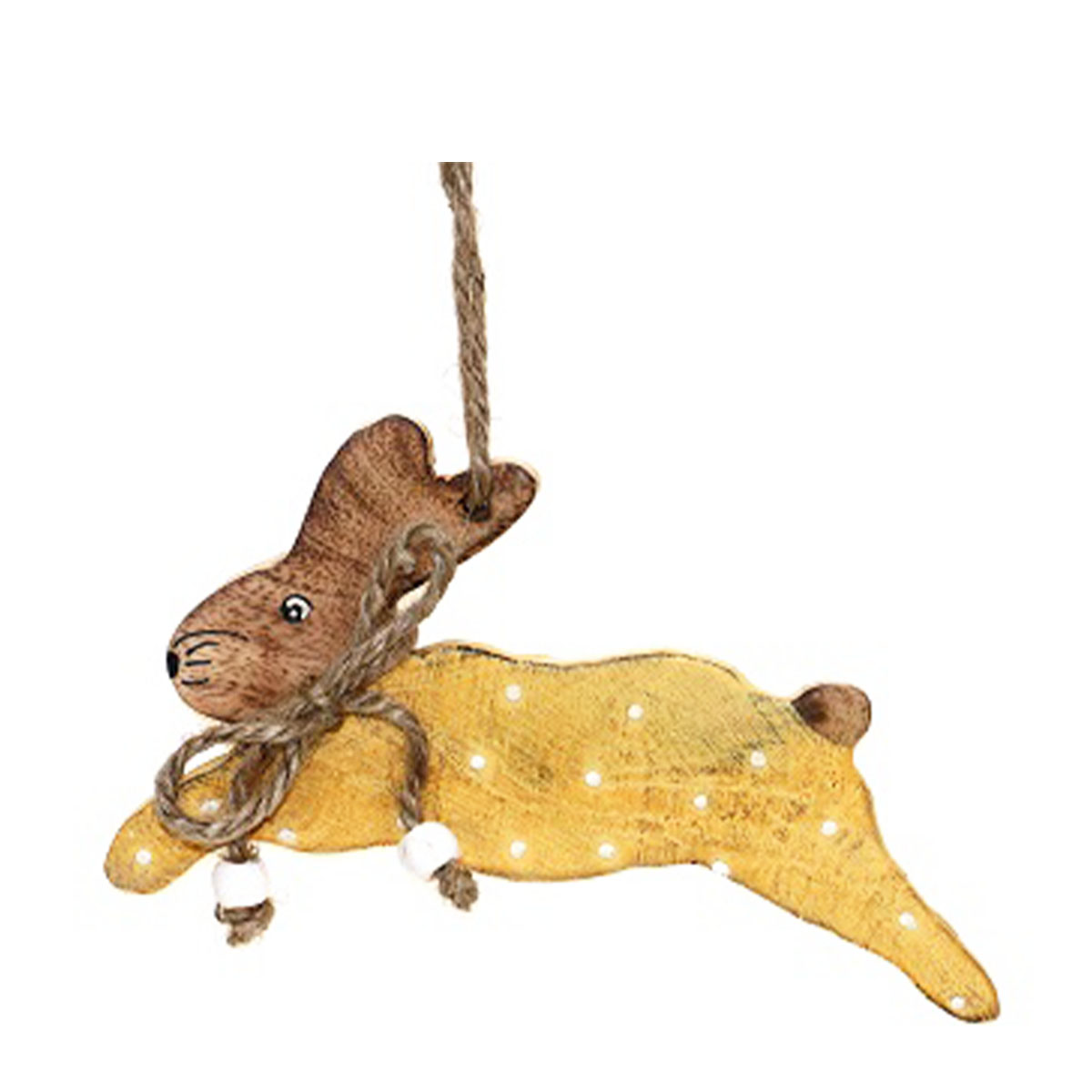 Holz Hase mit Punkte, gelb, 15cm, Hänger