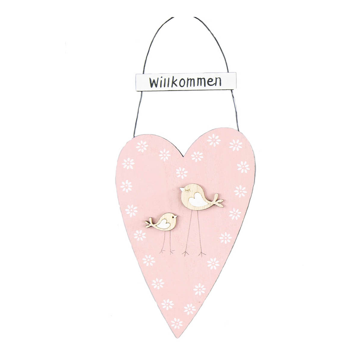 Produktinformationen "Deko Holz Herz mit Vögel, rosa, Willkommen, 27x11cm, Hänger"