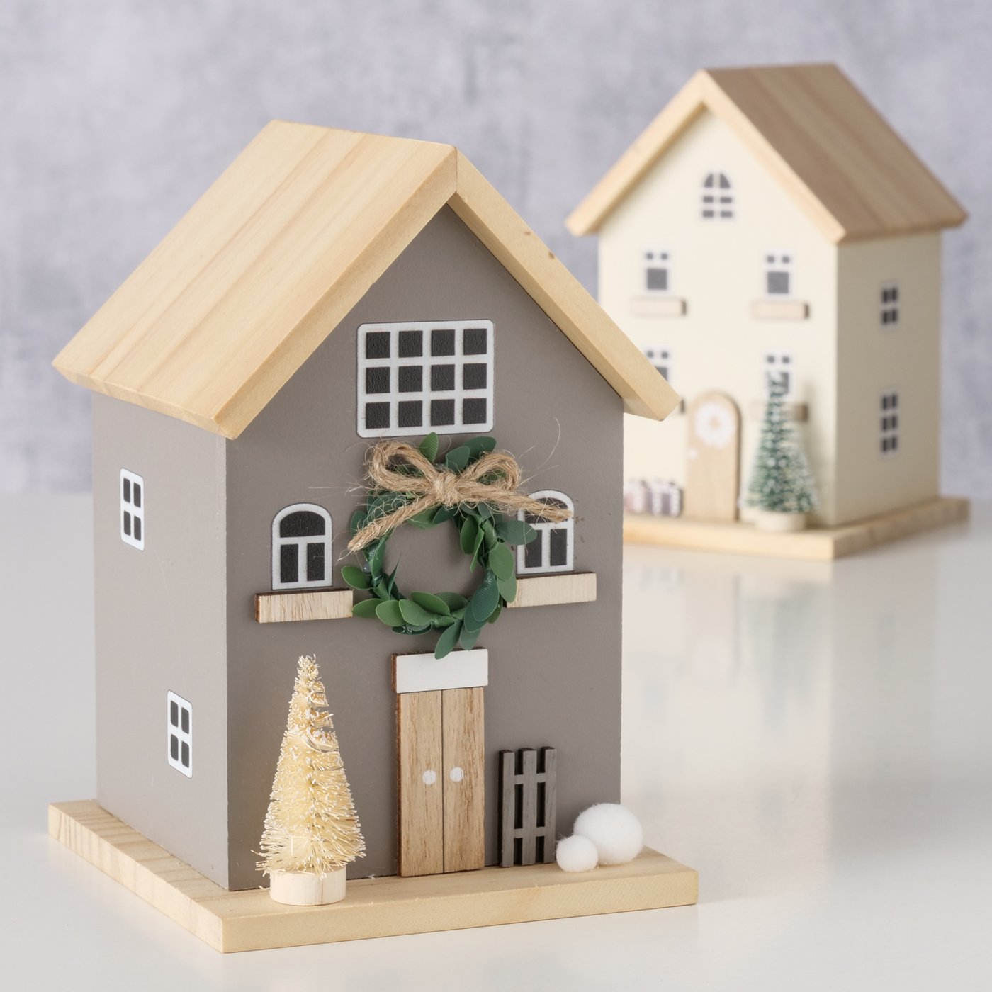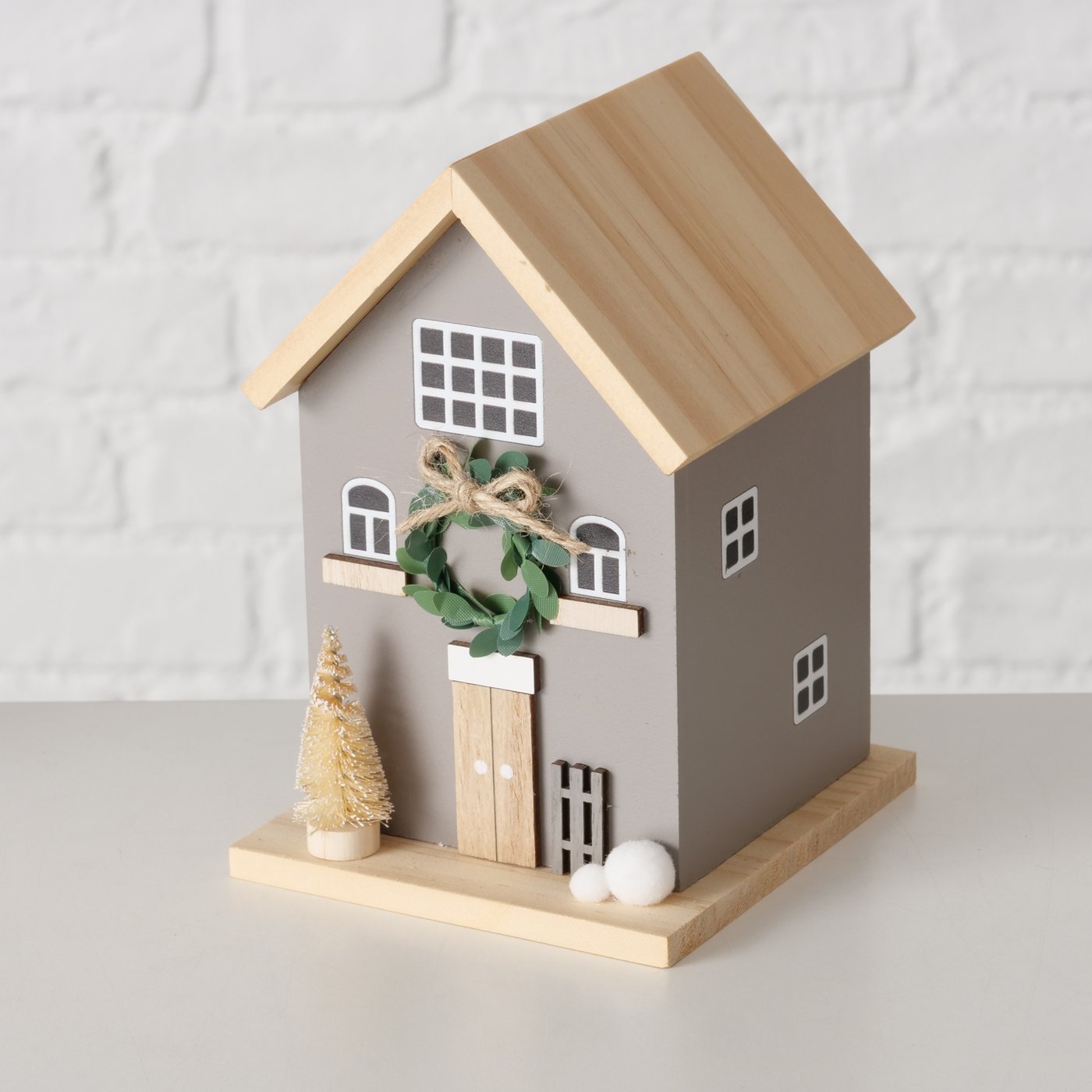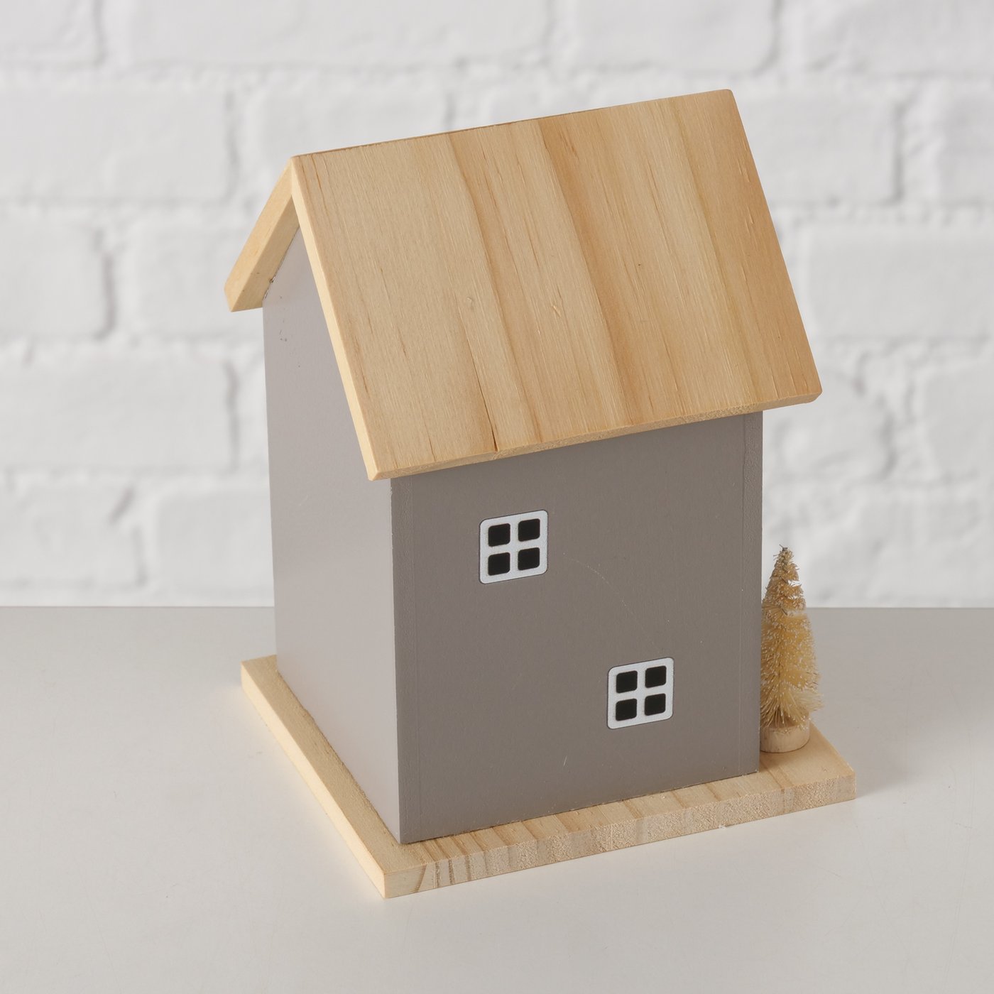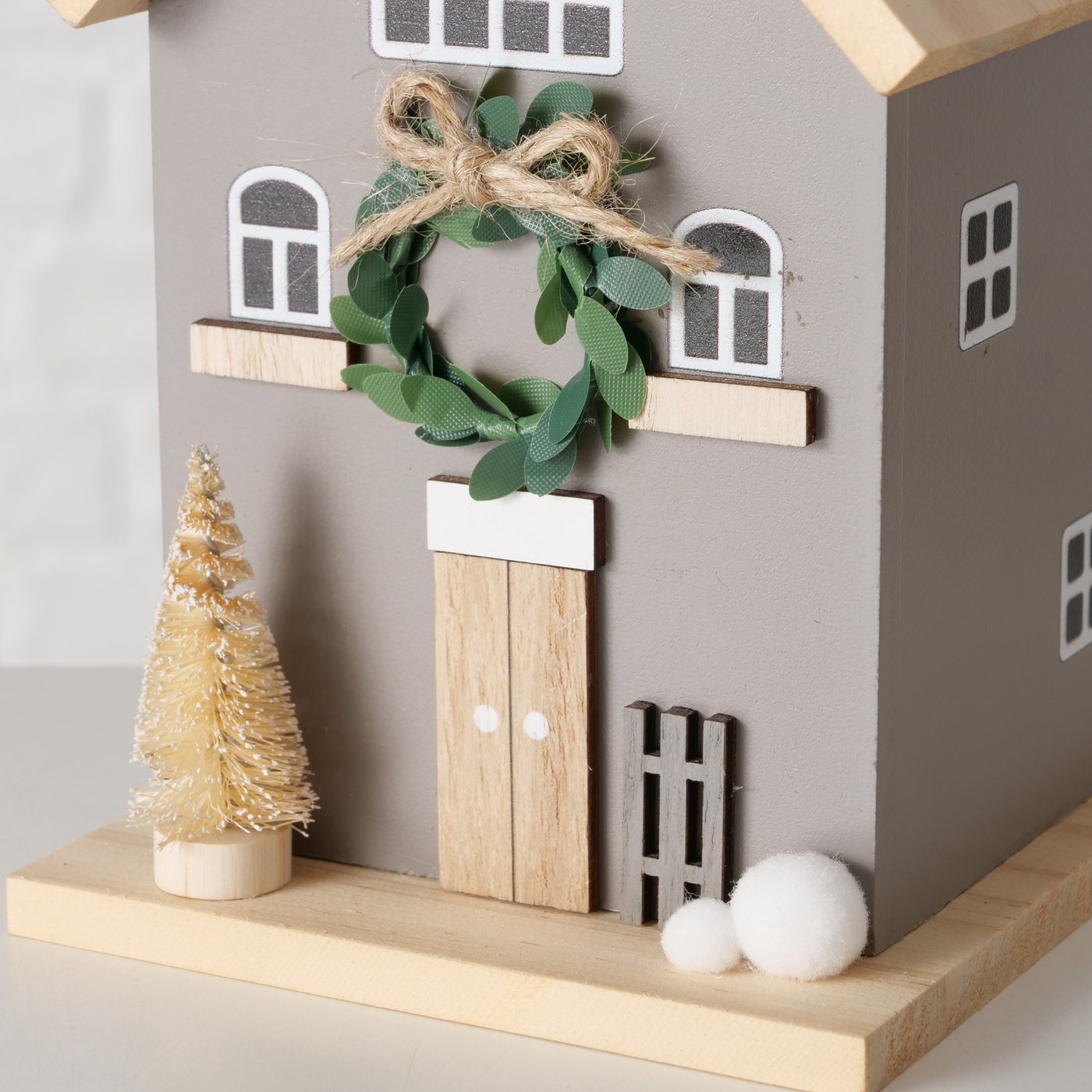 Deko Holzhaus Weihnachten, Weihnachtshaus Liv mit Tannenbaum, grau, Boltze Home Collections