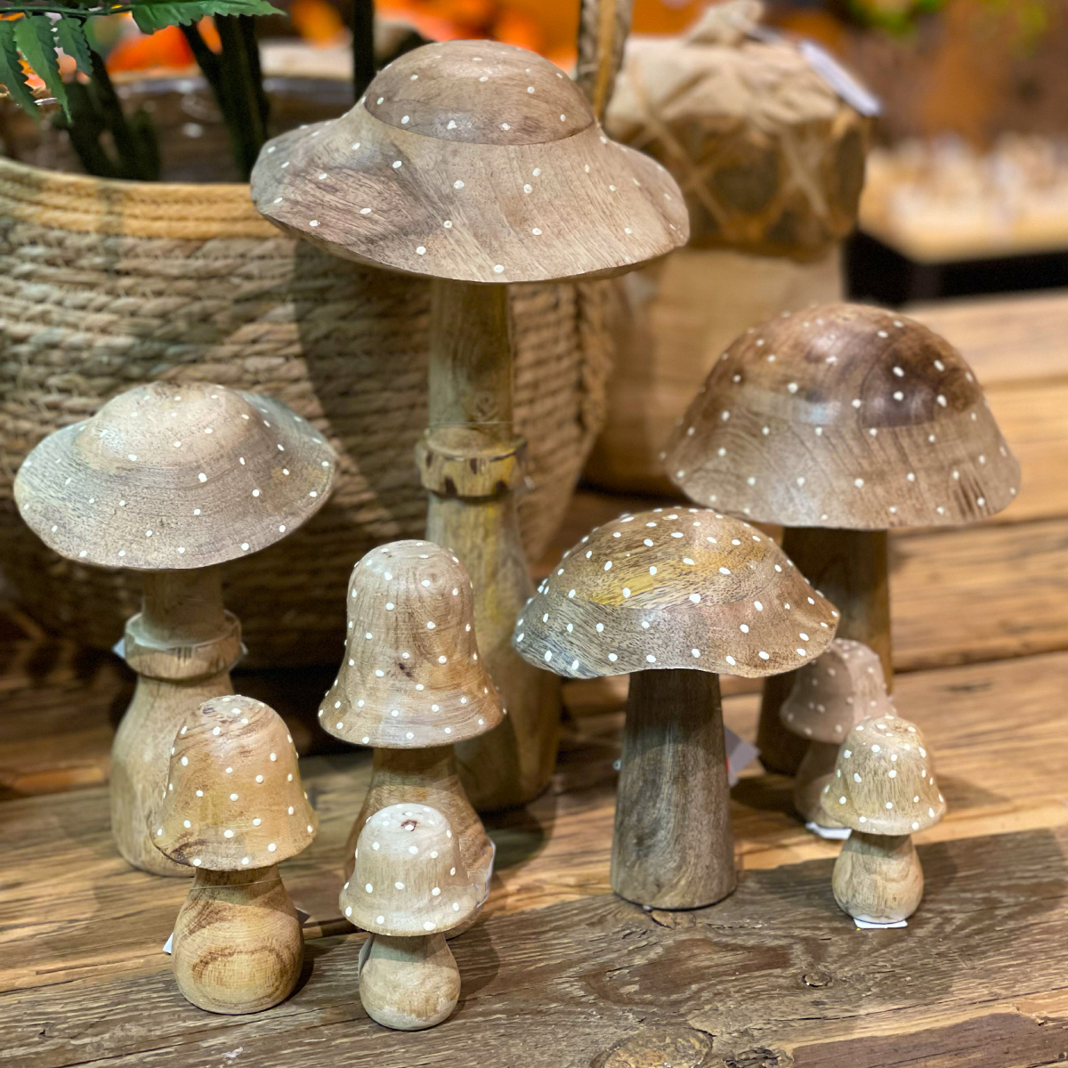 Deko Holzpilz, Fliegenpilz natur, breite Kappe, 20cm