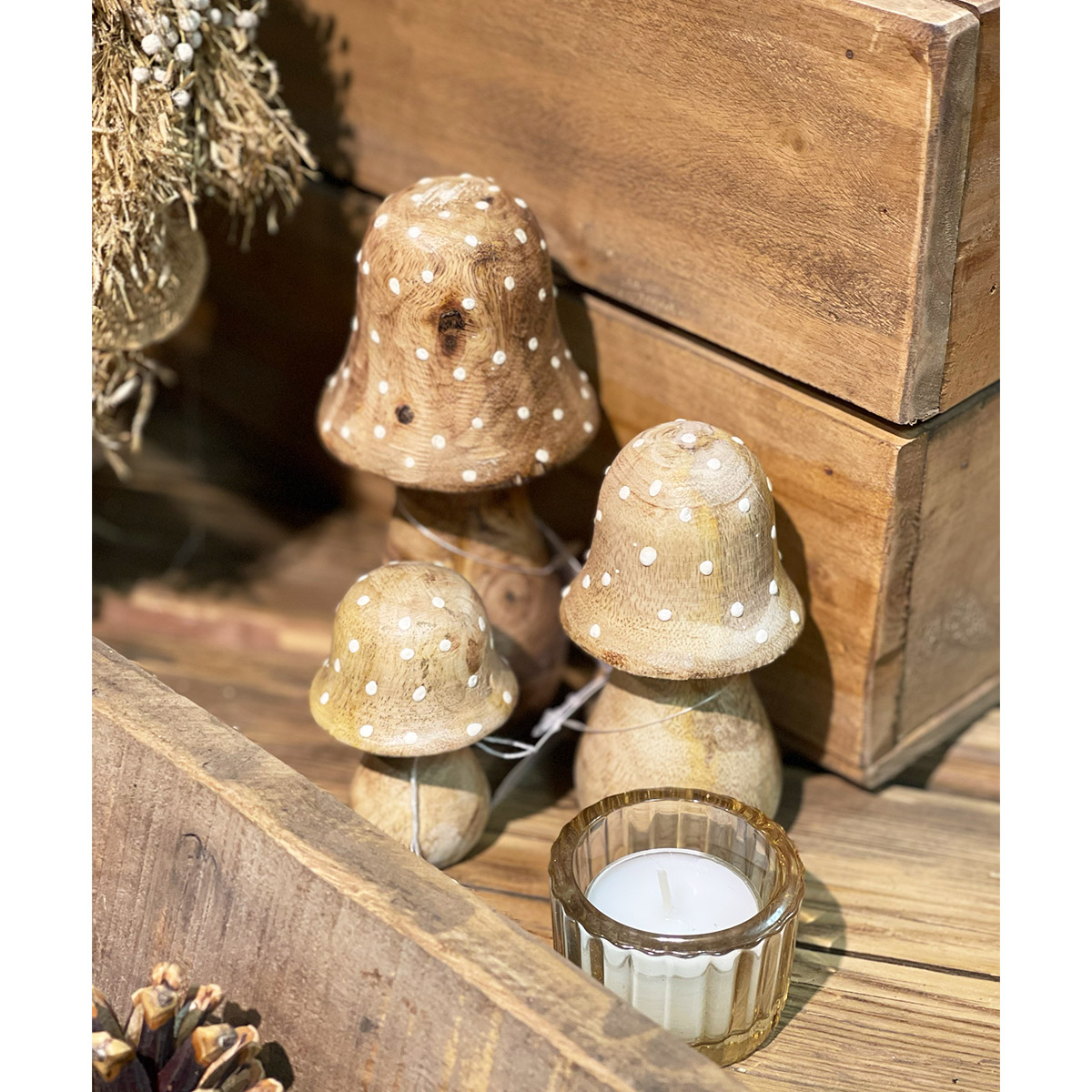 Deko Holzpilz, Fliegenpilz natur, schmale Kappe, 7x5cm