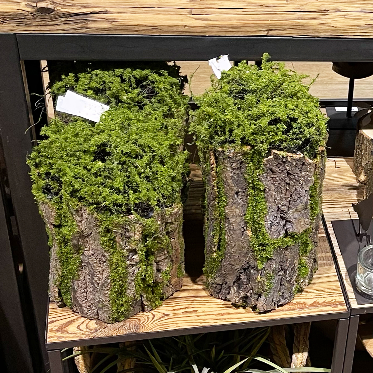 Deko Holzstamm mit Moos, 32cm, Kunststoff