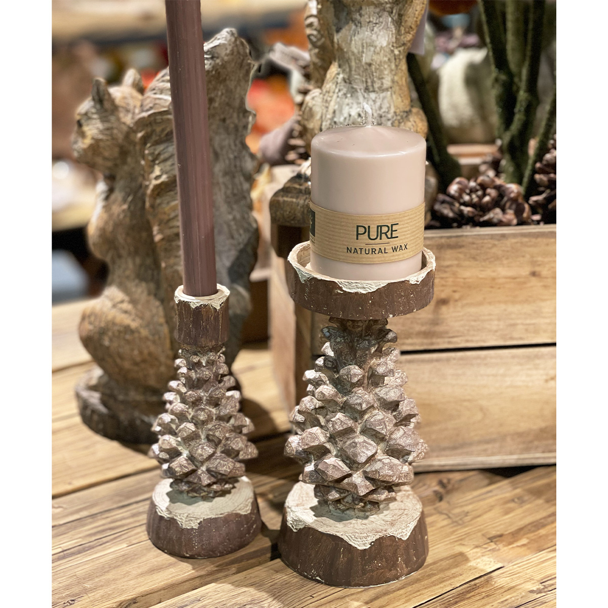 Deko Kerzenhalter Zapfen,Kerzenhalter in Holzoptik, braun-grau used look, 22cm, Resin