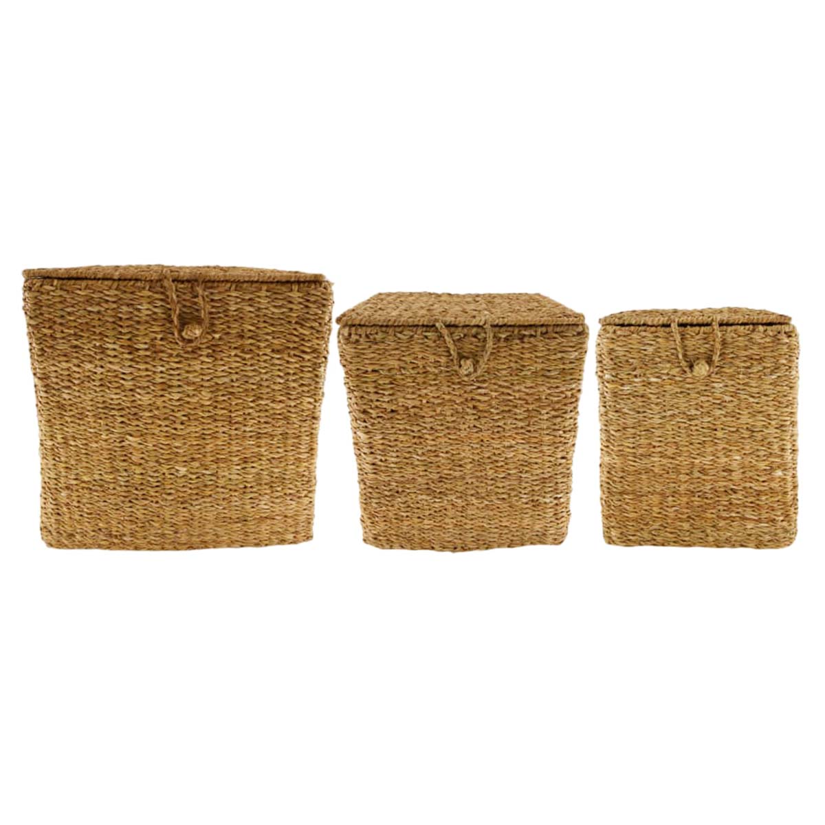 Deko Korb Seegras, Bastkorb Seegras mit Deckel, 38x38cm, DIJK Natural Collections