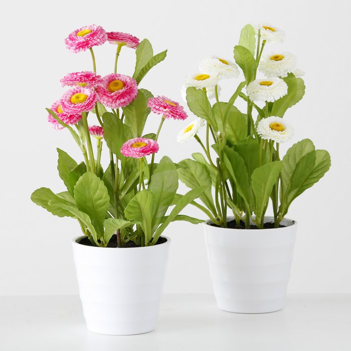 Deko Kunstblume Bellis, Gänseblümchen im Topf blühend, weiß, 30cm, Boltze Home Collections
