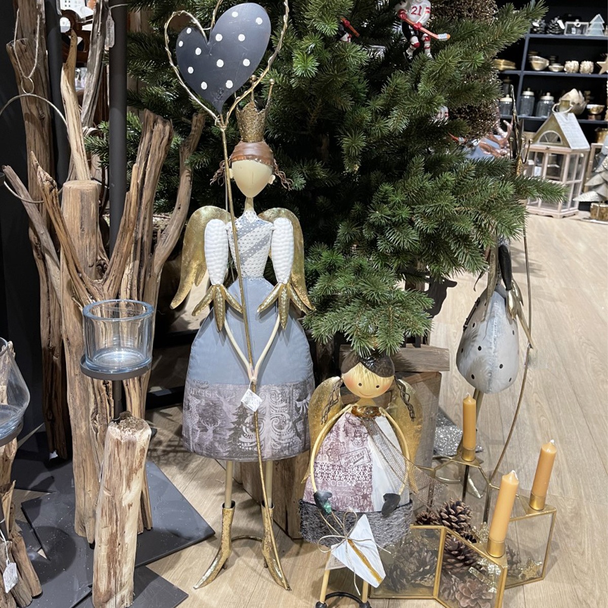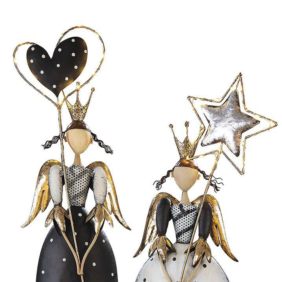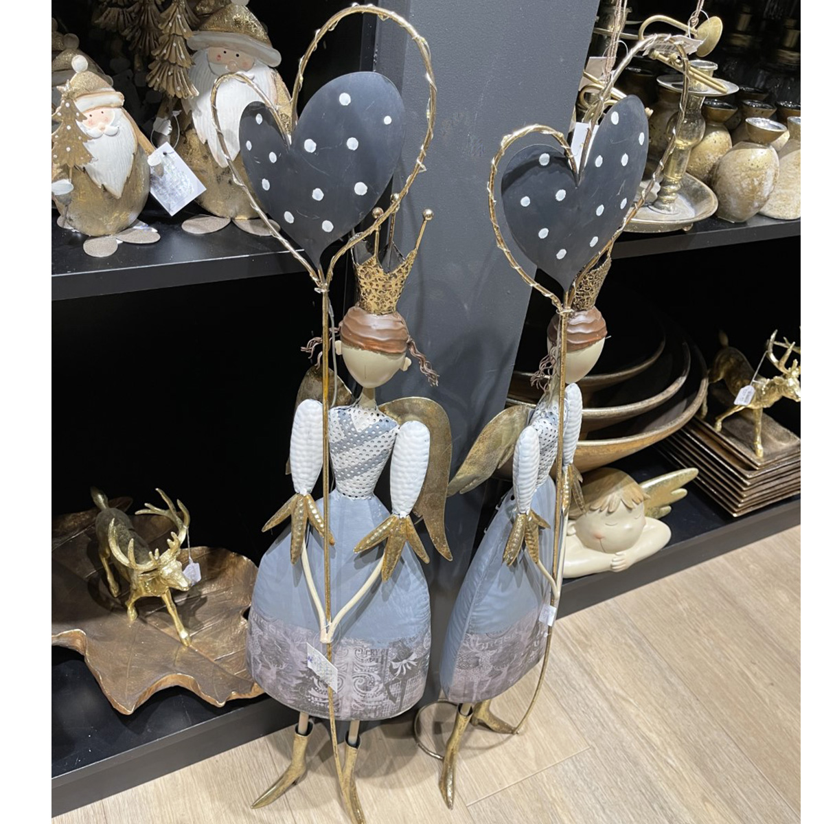 Deko LED Engel, Engel mit Herz, Antik look, grau/gold, 87cm, Metall