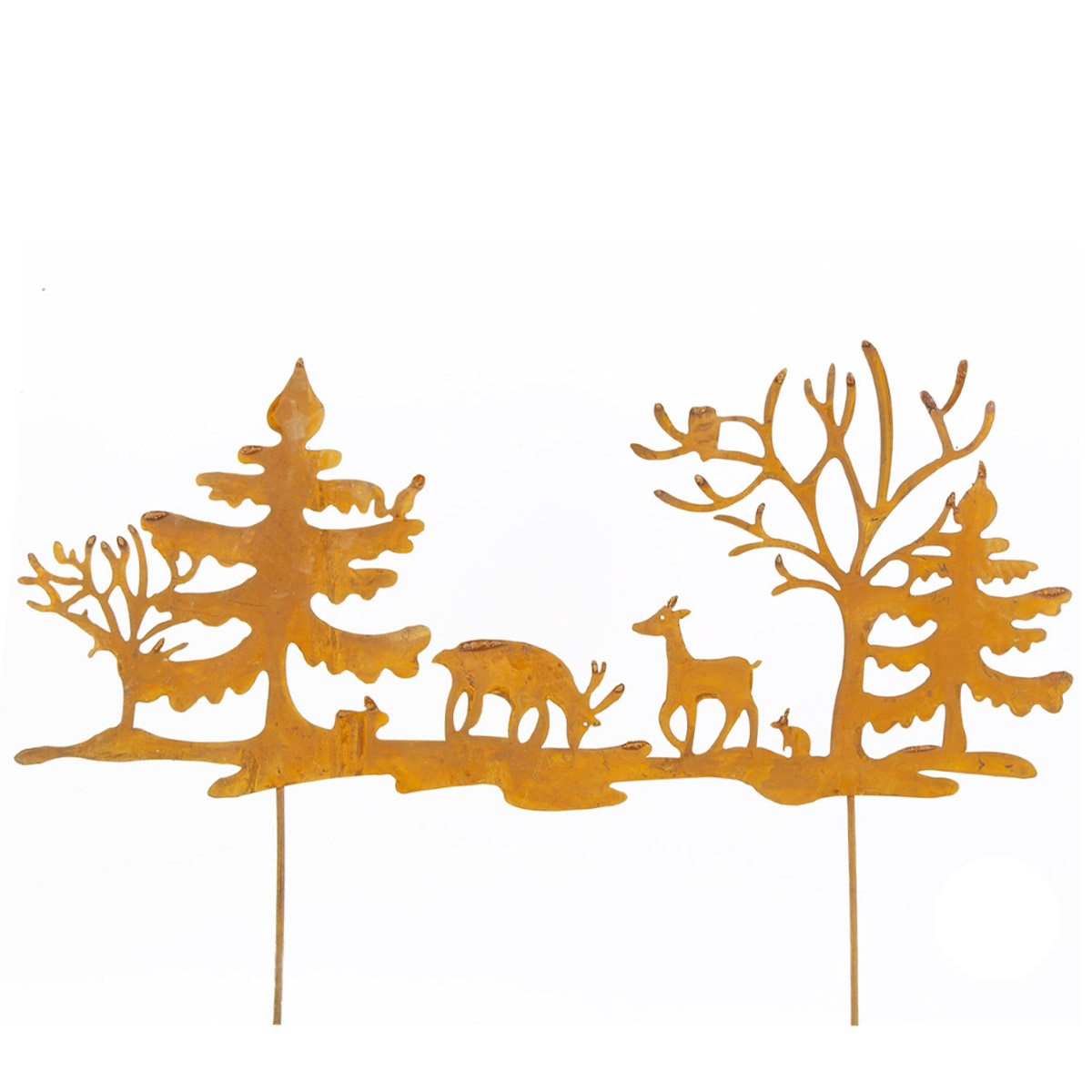 Deko Pflanzenstecker, Wald und Hirsche, used look, 35x16cm, Rost