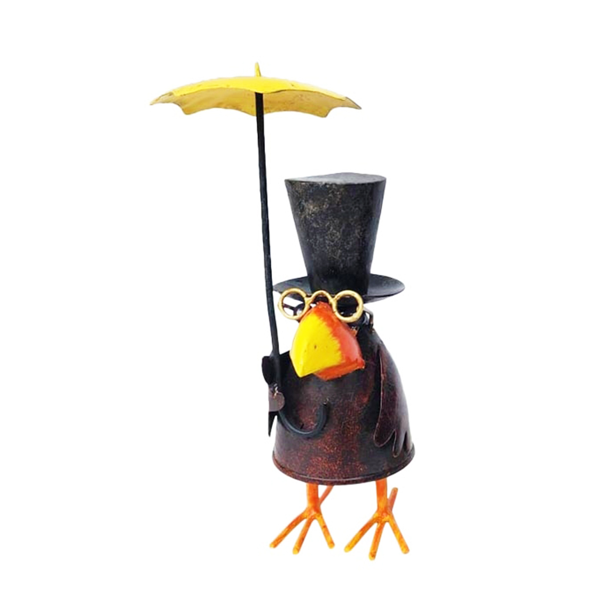 Produktinformationen "Deko Rabe Rudi, Metallrabe mit Zylinder und Schirm, 15x27cm, Metall"