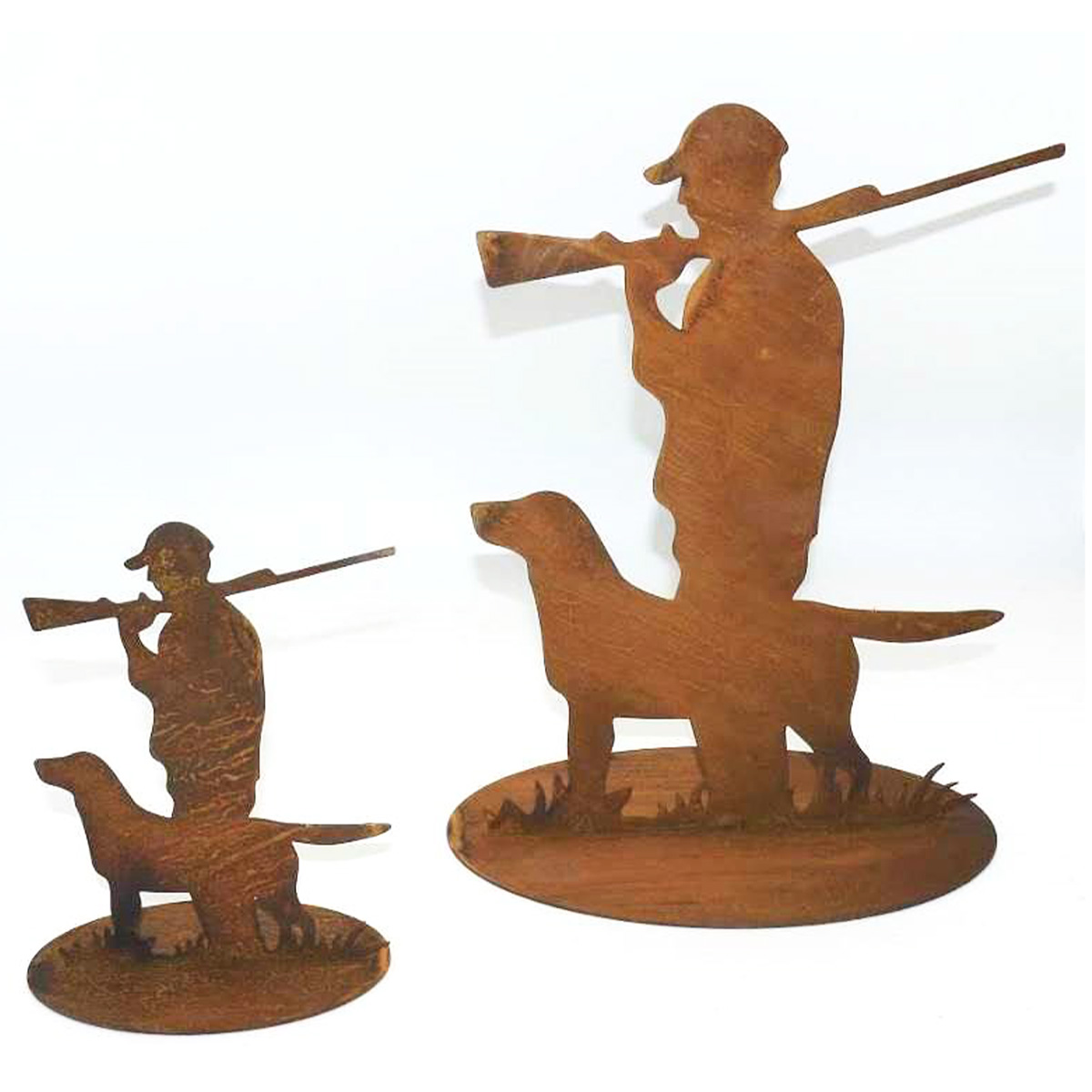 Deko Rost Figur, Jäger mit Hund, auf Platte; 27x35cm, Gerrys Garden