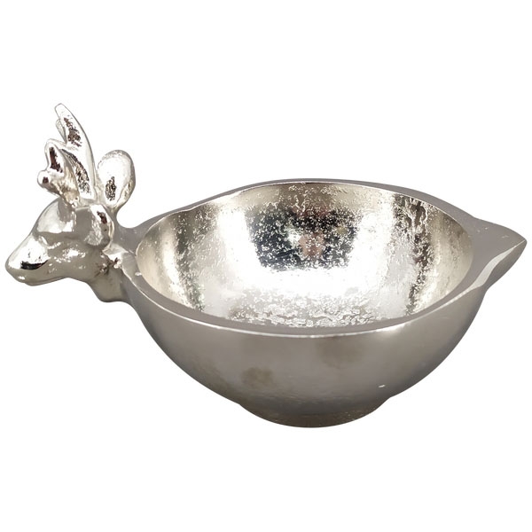 Deko Schale Hirsch, Metallschale silber mit Hirsch, 10x15cm