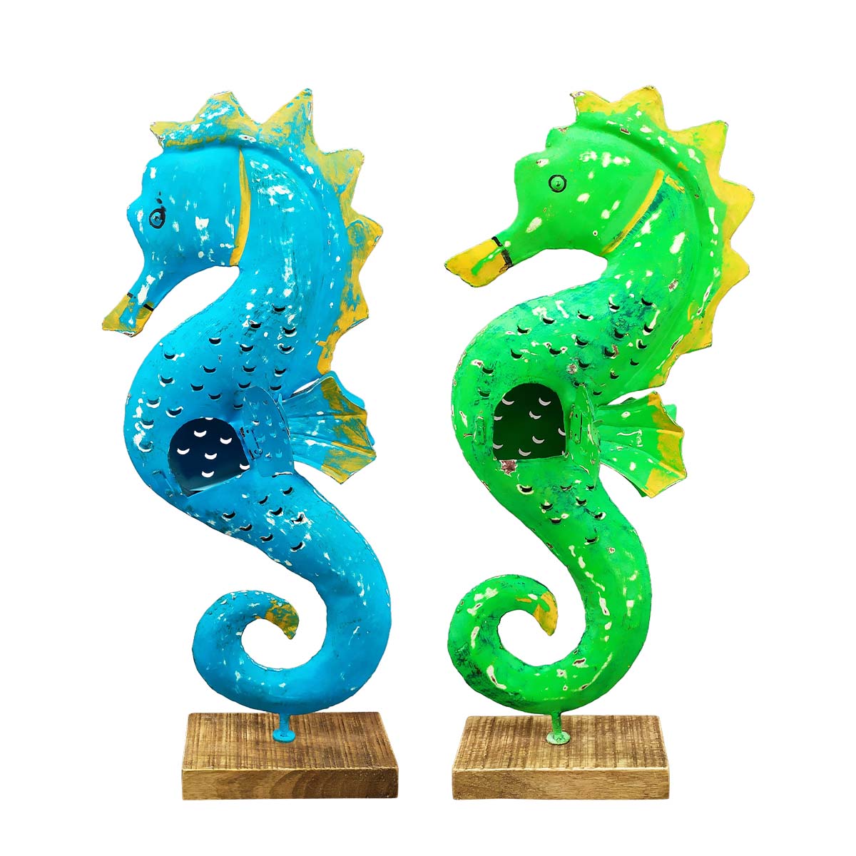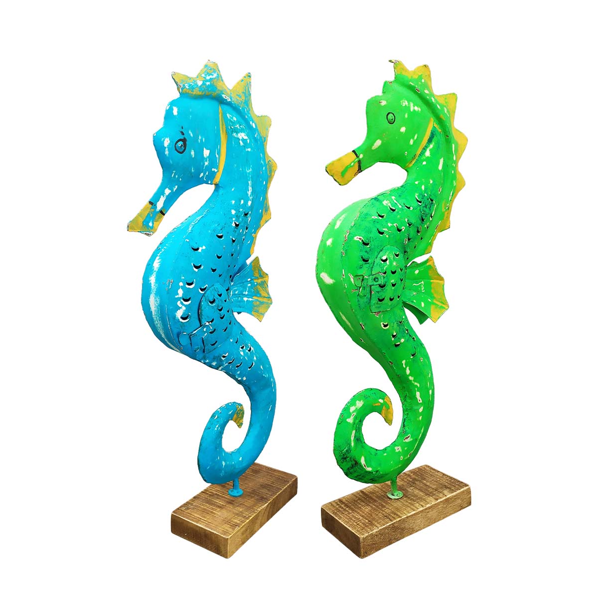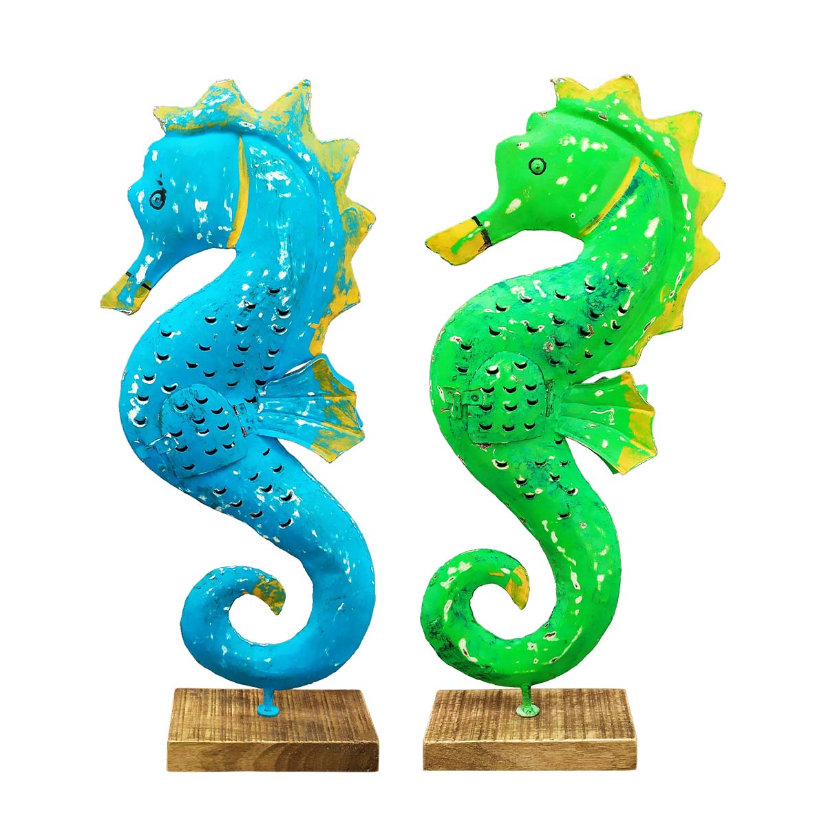 Deko Seepferdchen, Seepferdchen grün, 28x65cm, Metall, Aufsteller