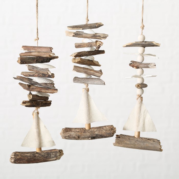 Deko Segelboot, Hänger Leinenboot mit Treibholz, Naturholz/Leinen, 23cm, Boltze Home Collections