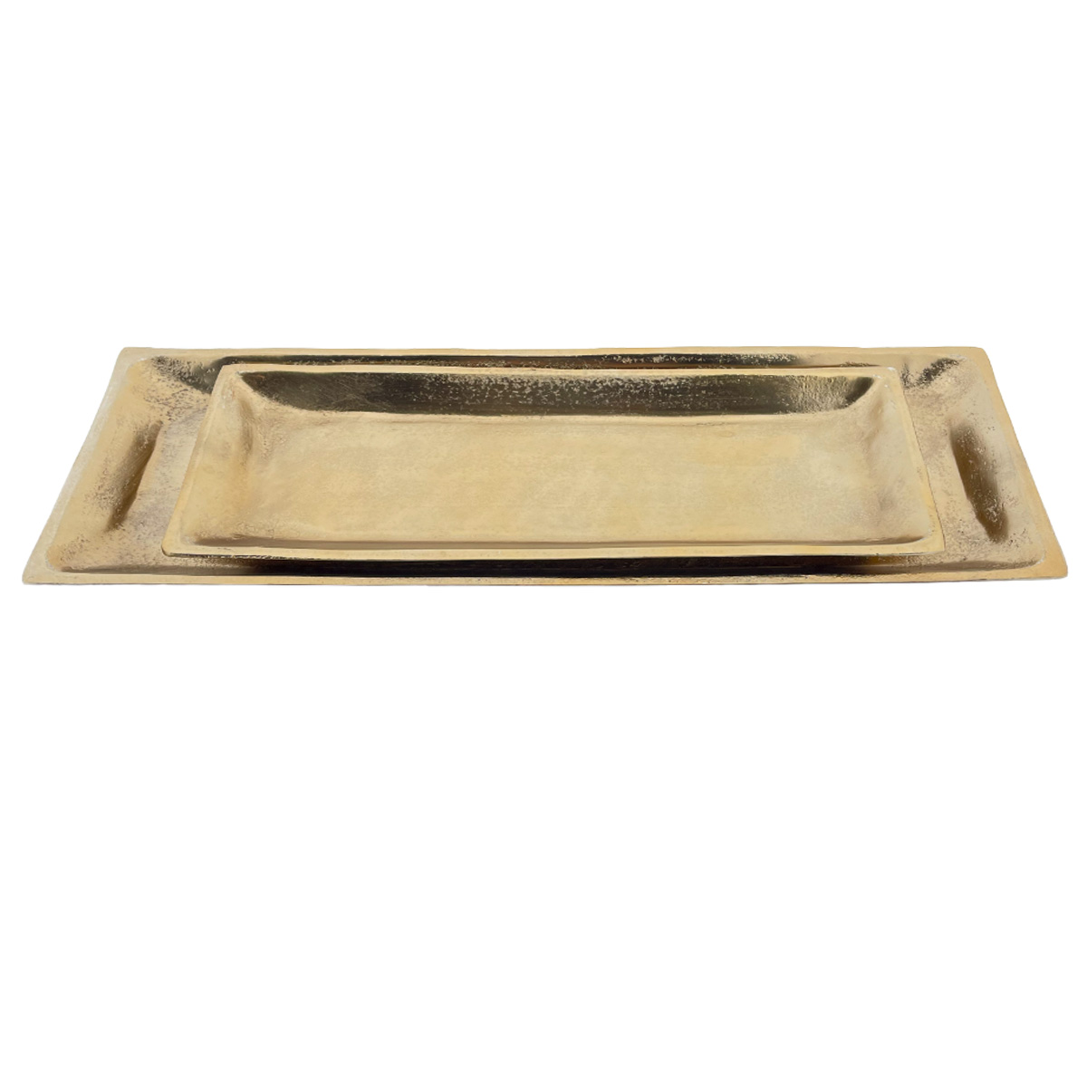 Deko Tablett antik gold, Tablett länglich, 35x14cm, Metall