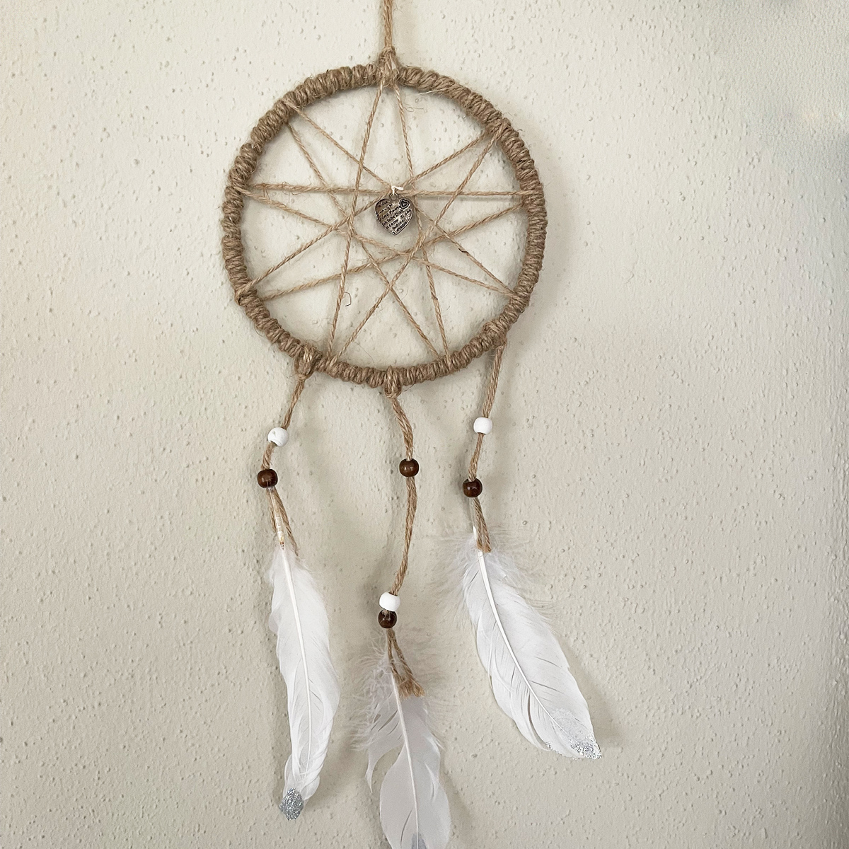 Material: Baumwolle, Holzperlen, Federn, Metall, Baumwolle/Synthetik-Schnur