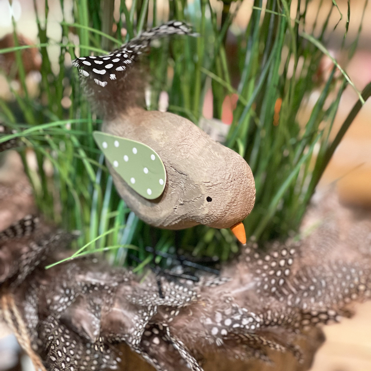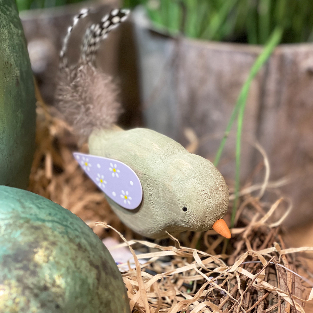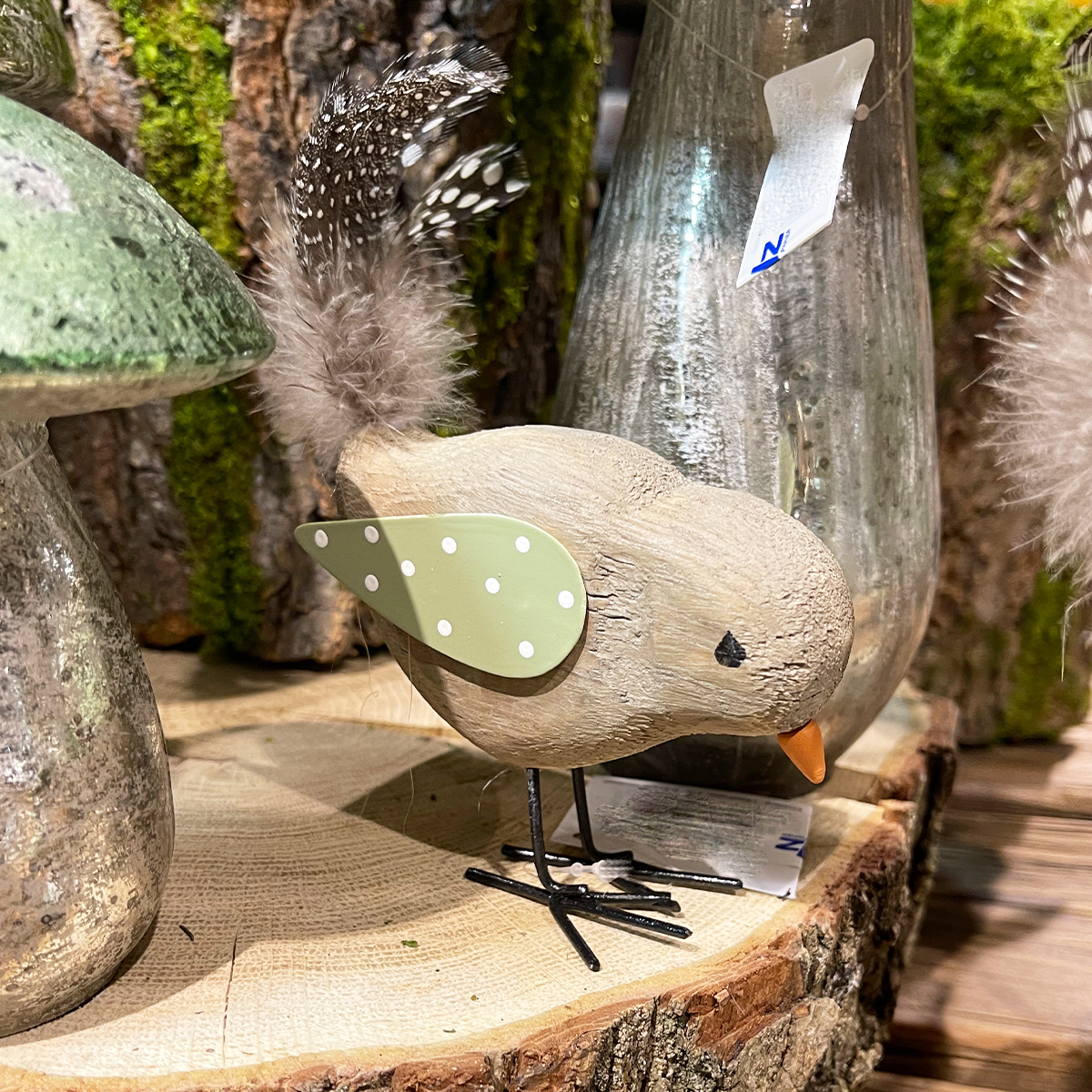 Deko Vogel, Holzvogel, grün oder creme, 13x10cm