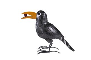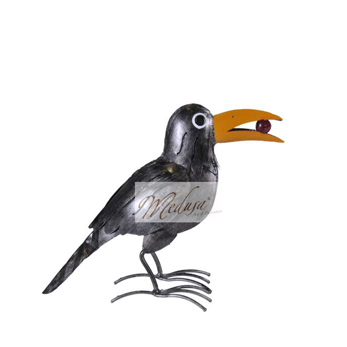 Deko Vogel Rabe, Metallrabe mit Beere, 27x32cm, Medusa