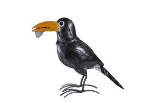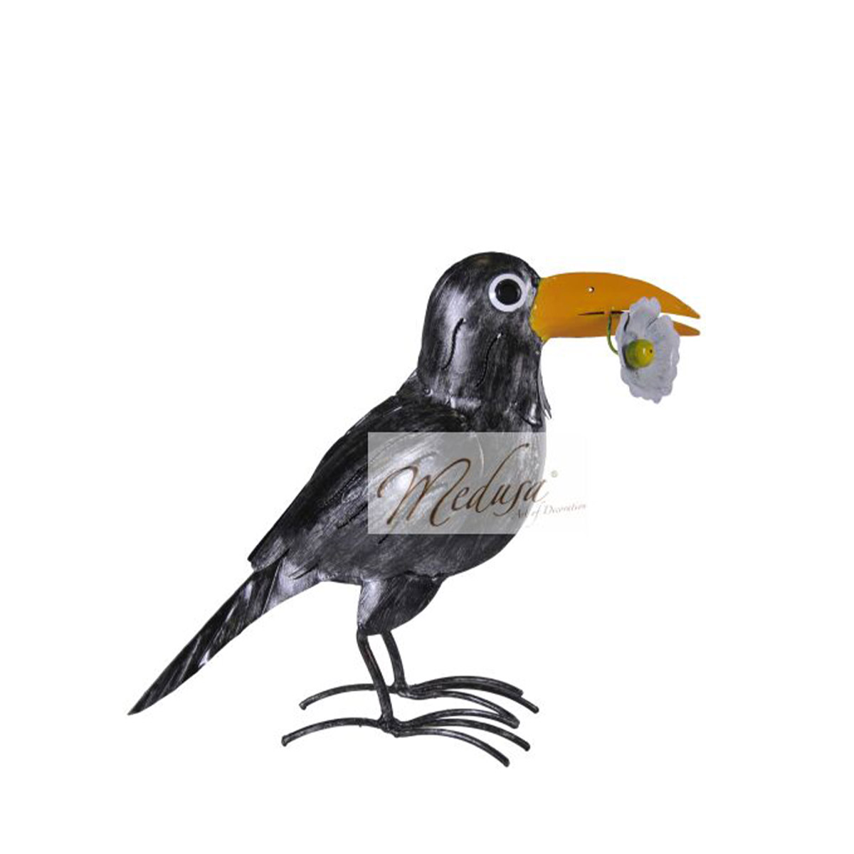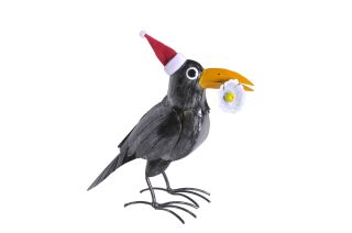 Deko Vogel Rabe, Metallrabe mit Blume, 27x32cm, Medusa