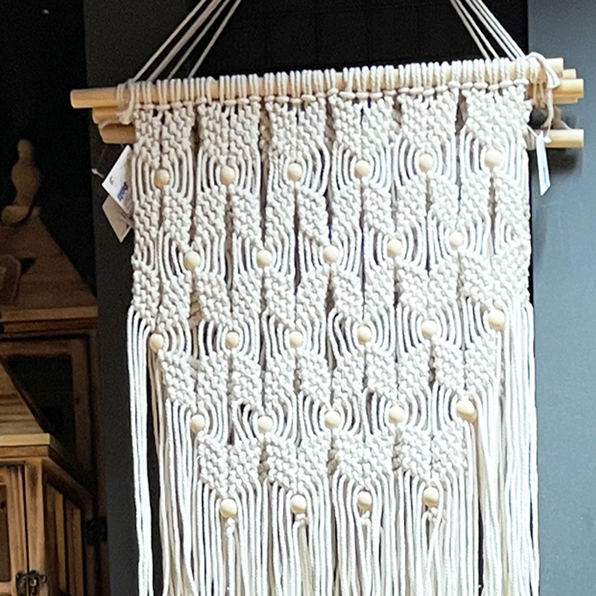 Deko Wandhänger Boho, creme, Makramee, 135x65cm, Hänger