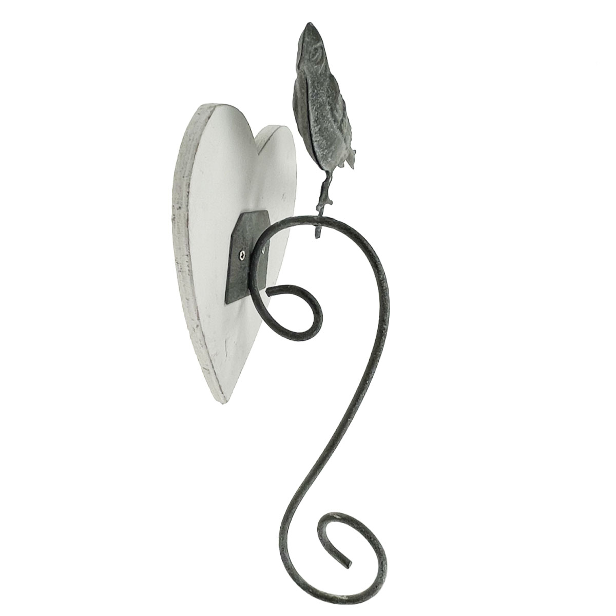Produktinformationen "Deko Wandhaken, Herz mit Vogel, grau-weiß- used look, 21x11cm, Metall-Holz"
