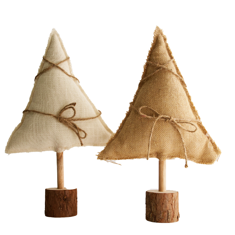 Deko Weihnachtsbaum Leinen, Jutebaum auf Holzfuß, cremeweiß, 28x42cm, Jute/Naturholz