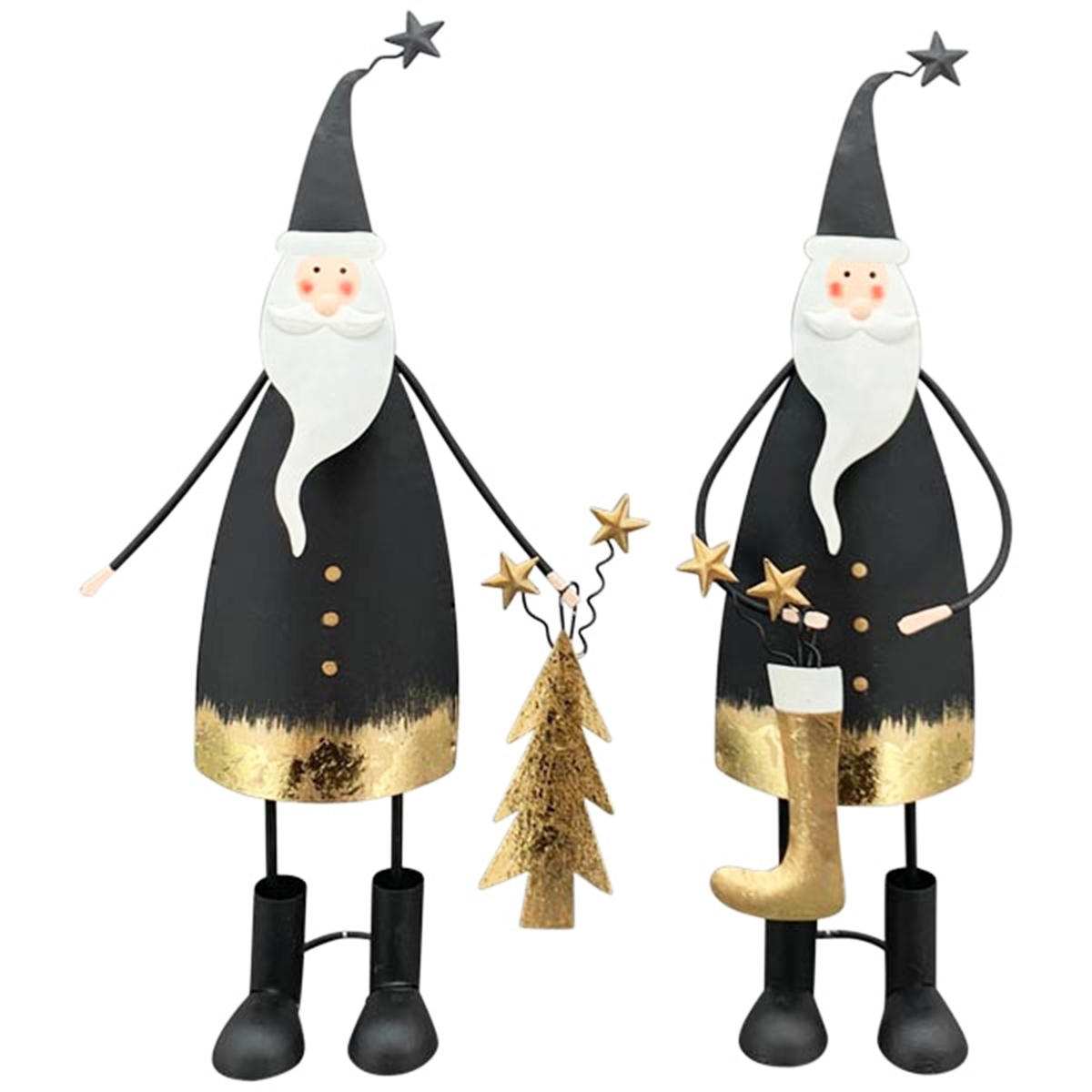 Deko Weihnachtsmann Santa Niko, Nikolaus mit Weihnachtsstrumpf, schwarz-gold, 22cm