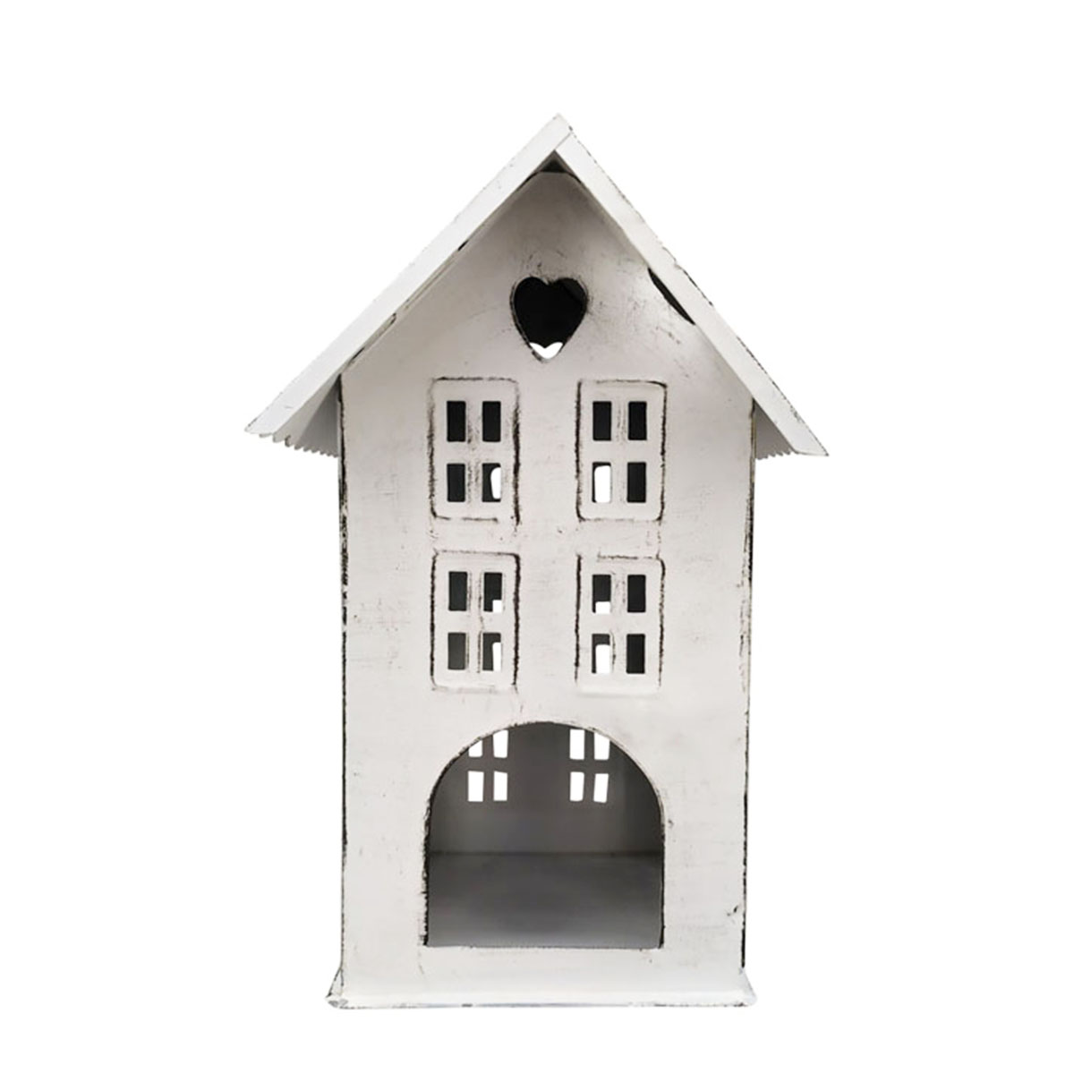 Deko Windlicht, Haus mit Herz, antikweiß, used look, 15x21cm, Metall