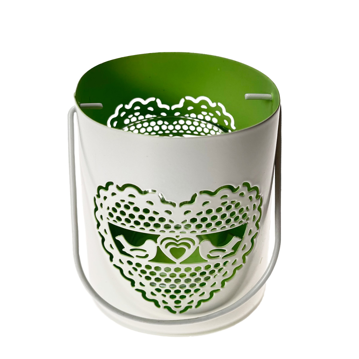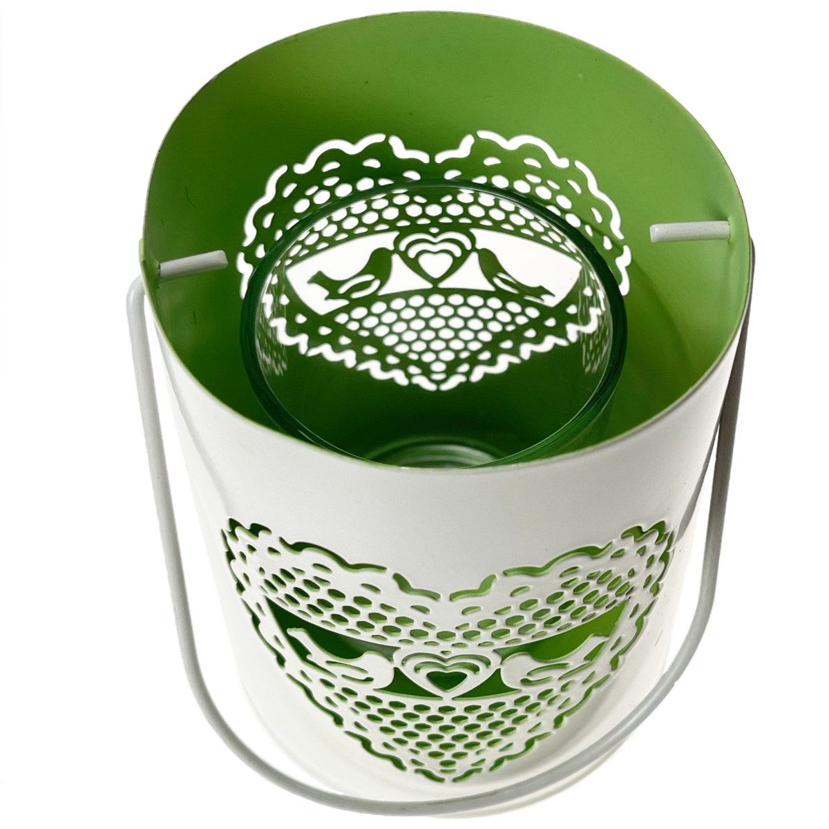 Deko Windlicht Hochzeit, Metallwindlicht mit Herz und Vögel, 7x10cm