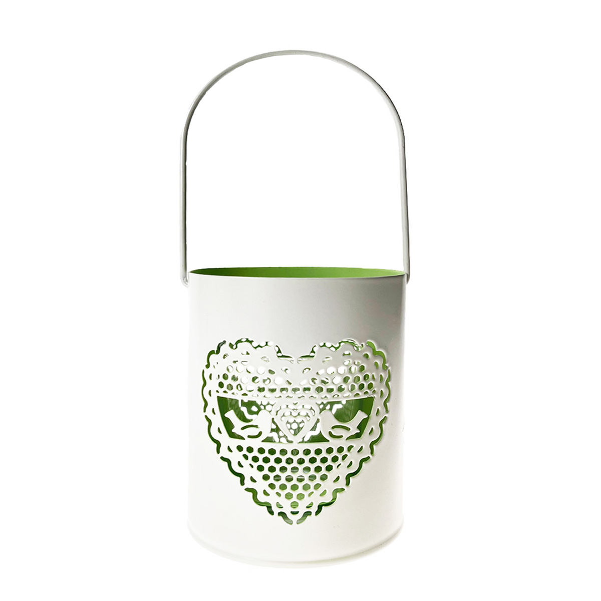 Produktinformationen "Deko Windlicht Hochzeit, Metallwindlicht mit Herz und Vögel, 7x10cm"