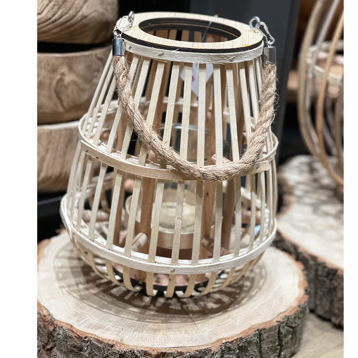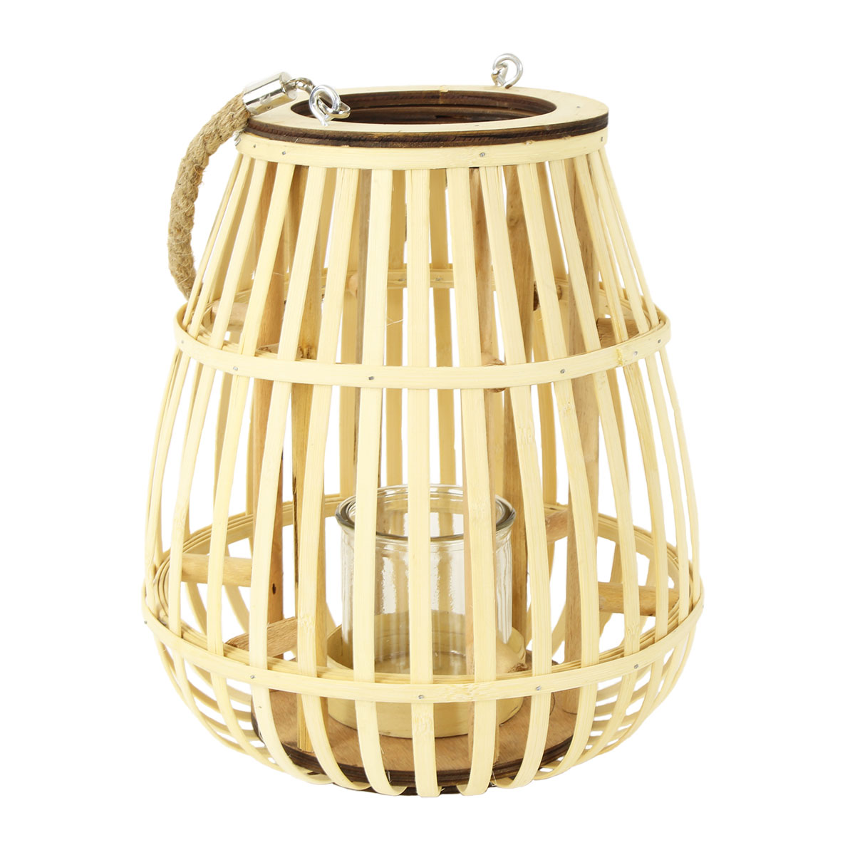 Deko Windlicht Rattan natur, Korbwindlicht Boho mit Henkel, 31cm