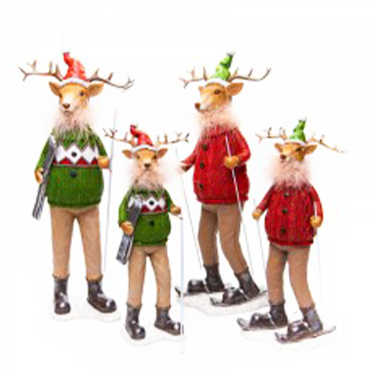 Deko Winterfigur Hirsch, Skifahrer Hirsch mit rotem Pullover, 29cm, Polyresin, Gerrys Garden