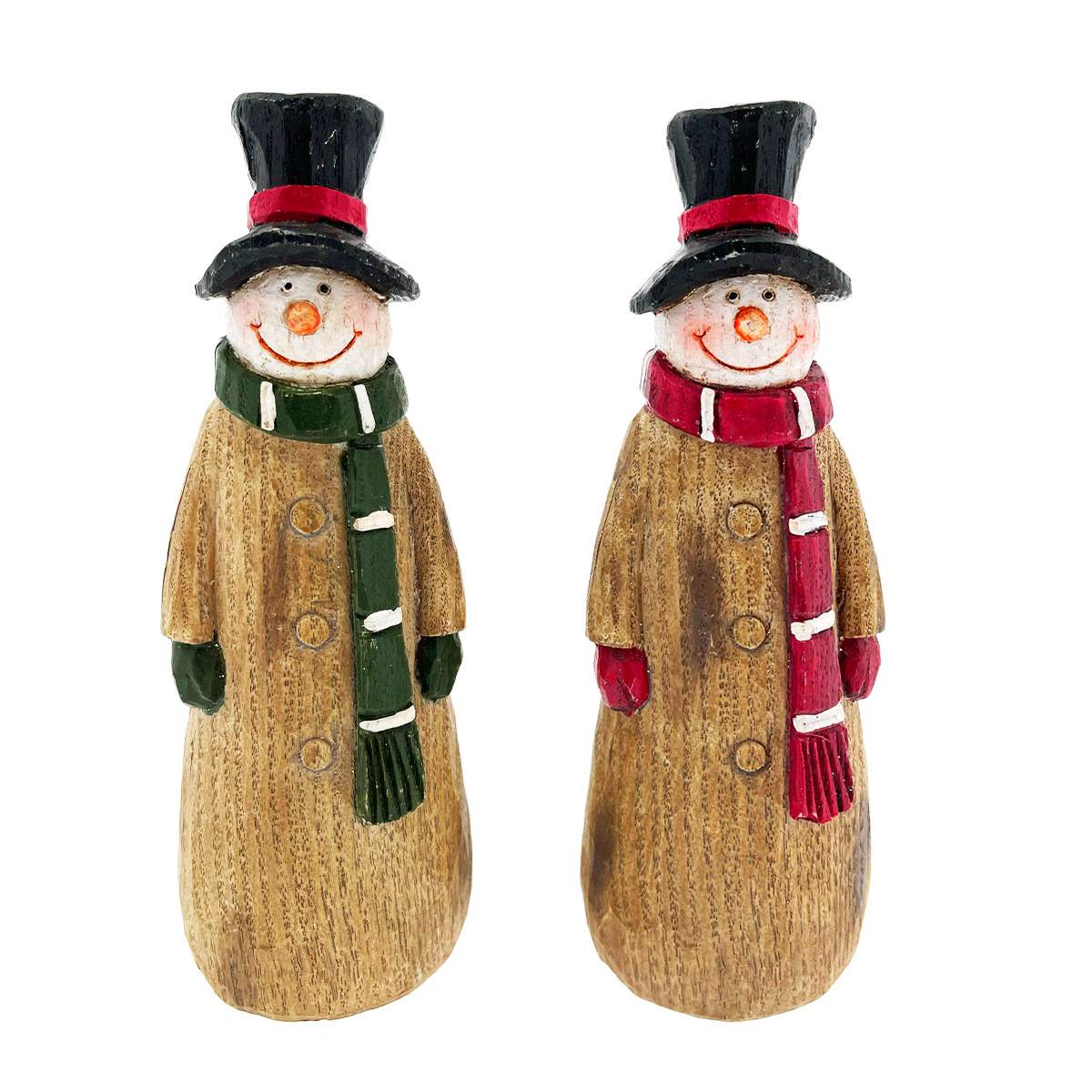 Deko Schneemann mit rotem Schal und Hut, 16cm, Polyresin