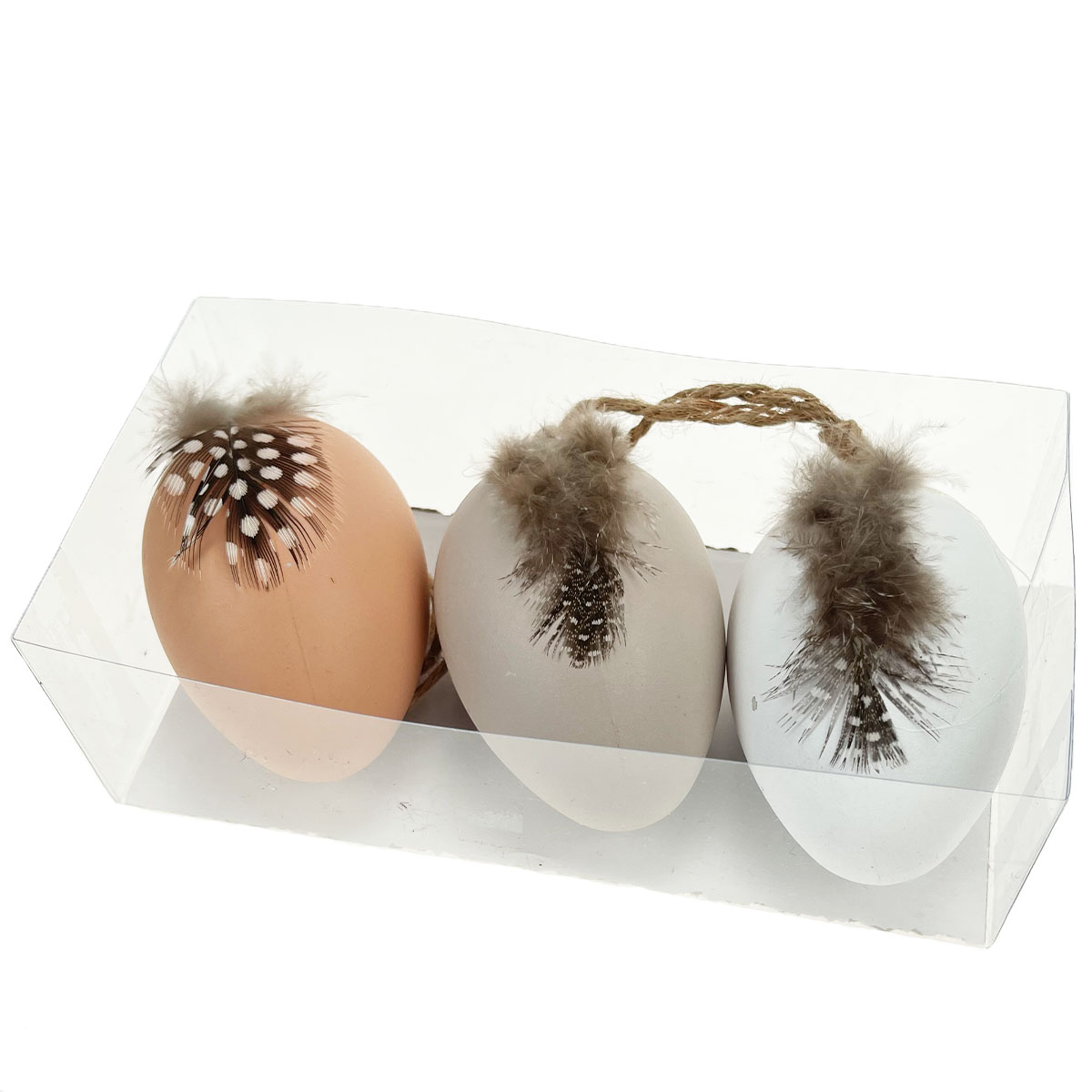 Eier mit Feder 3 St/Box Kunststoff Hänger