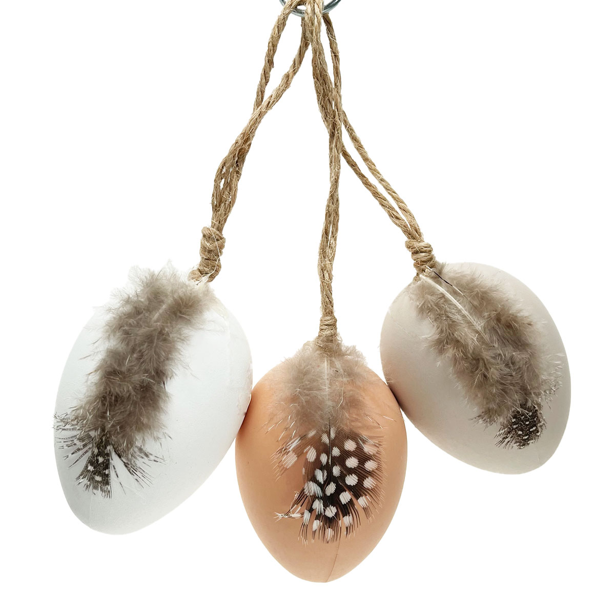Kunststoff Eier mit Feder, 3 St/Box, Hänger