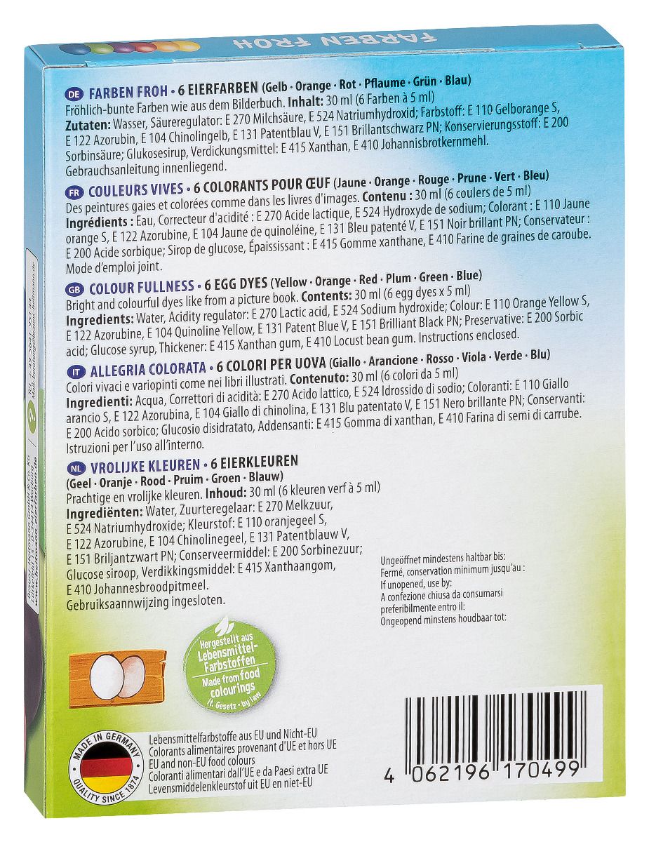 Eierfarbe Farben Froh, Flüssige Eierfarbe bunt, 6 Farben a 5ml, Heitmann
