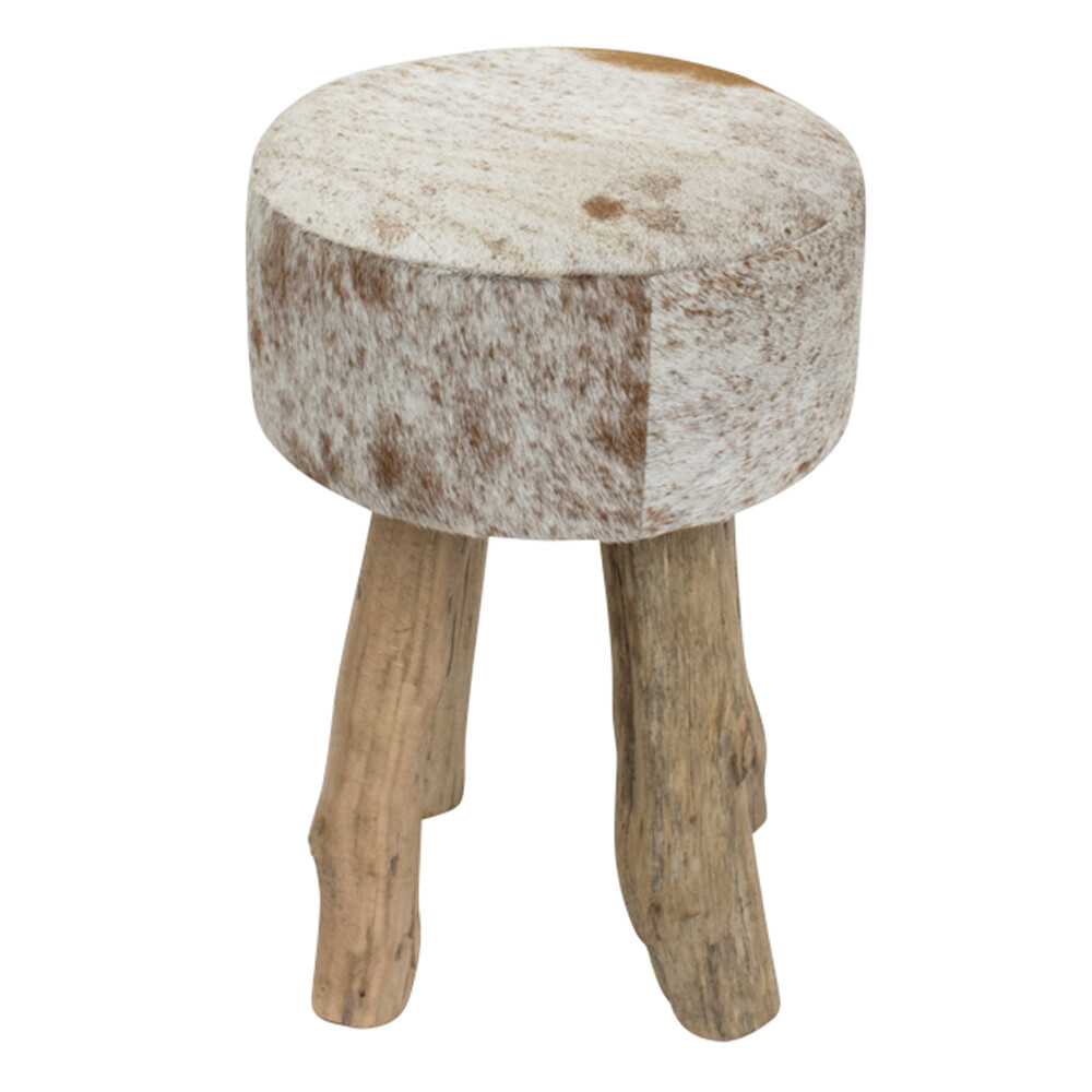 Fell Hocker, rund, braun-weiß, 45cm, Mars & More